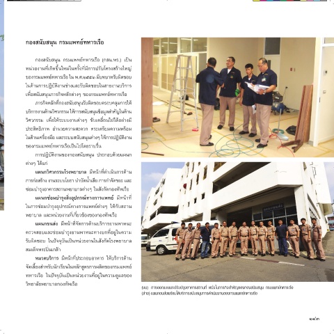 (บน) การออกแบบและปรับปรุงอาคารสถานที่ หนึ่งในภารกิจส�าคัญของกองสนับสนุน กรมแพทย์ทหารเรือ