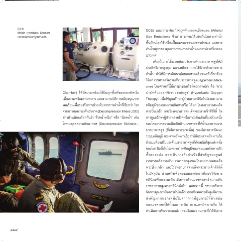 Chamber) ให้มีความพร้อมใช้ในทุกพื้นที่ของกองทัพเรือ บ�าบัดด้วยออกซิเจนแรงดันสูง” (Hyperbaric Oxygen