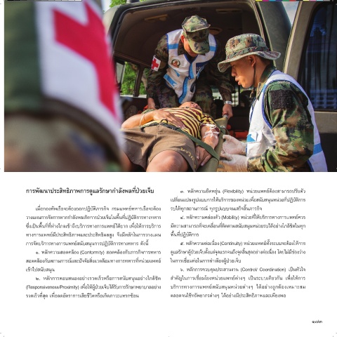 สอดคล้องกับสถานการณ์และปัจจัยสิ่งแวดล้อมทางการทหารที่หน่วยแพทย์ ในการเชื่อมต่อในการล�าเลียงผู้ป่วยเจ็บ