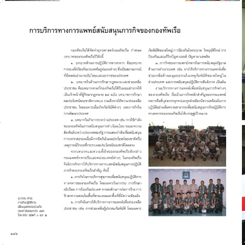 ประชาชน คือบทบาทตามที่กองทัพเรือได้รับมอบอ�านาจให้ งานบริการทางการแพทย์เพื่อสนับสนุนภารกิจต่างๆ