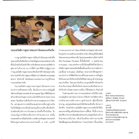 ระบบสวัสดิการสุขภาพของก�าลังพลกองทัพเรือ ก�าหนดแนวทางการด�าเนินการให้หลักประกันสุขภาพถ้วนหน้า