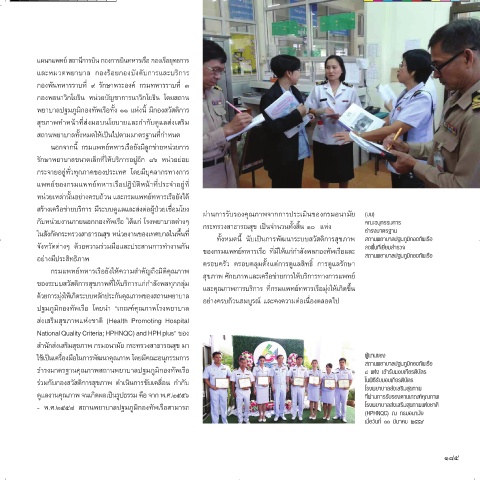 ของระบบสวัสดิการสุขภาพที่ให้บริการแก่ก�าลังพลทุกกลุ่ม และคุณภาพการบริการ ที่กรมแพทย์ทหารเรือมุ่งให้เกิดขึ้น