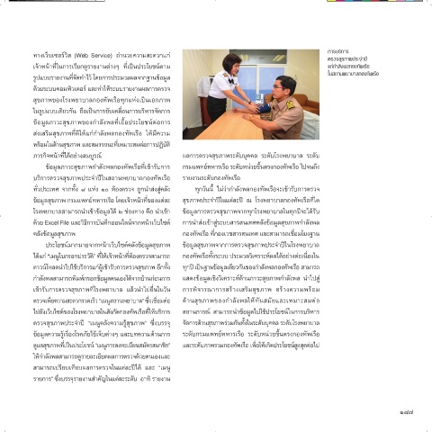ก�าลังพลสามารถพิมพ์กรอกข้อมูลตนเองได้จากบ้านก่อนการ แสดงข้อมูลเชิงวิเคราะห์ด้านภาวะสุขภาพก�าลังพล น�าไปสู่