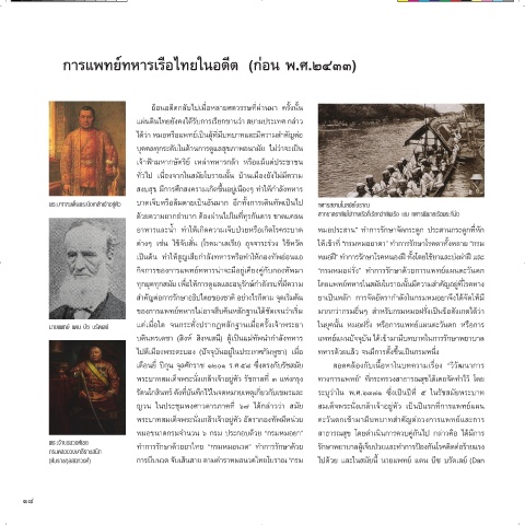 ทุกยุคทุกสมัย เพื่อให้การดูแลและอนุรักษ์ก�าลังรบที่มีความ โดยแพทย์ทหารในสมัยโบราณนั้นมีความส�าคัญอยู่ที่โรคทาง