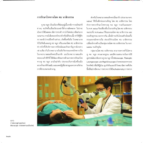 ทางหู คอ จมูก มาเป็นล�าดับ ประกอบกับการมีเครื่องมือ Laryngoscope และ Rigid Sinuscope ถ่ายทอดออกทางจอ