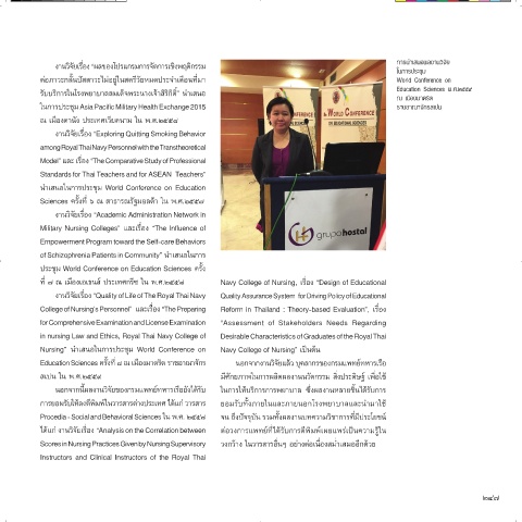 Nursing” น�าเสนอในการประชุม World Conference on Navy College of Nursing” เป็นต้น