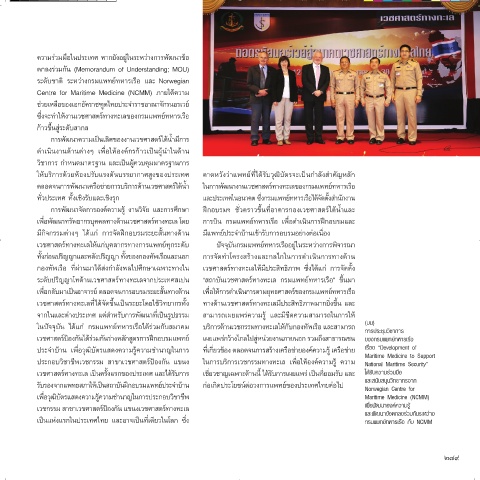 ตลอดจนการพัฒนาเครือข่ายการบริการด้านเวชศาสตร์ใต้น�้า ในการพัฒนางานเวชศาสตร์ทางทะเลของกรมแพทย์ทหารเรือ
