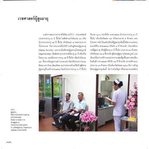 ร้อยละ 2๐ และมีประชากรอายุ ๖๕ ปี ขึ้นไป เพิ่มเป็นร้อยละ มีแนวโน้มว่าจะมีจ�านวนประชากรกลุ่มนี้สูงขึ้นอย่างต่อเนื่อง