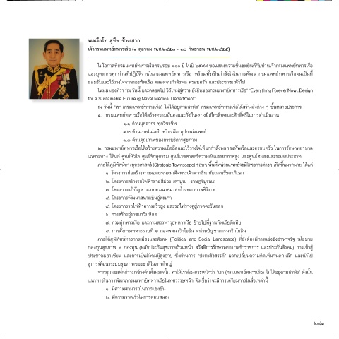 และบุคลากรทุกท่านที่ปฏิบัติงานในกรมแพทย์ทหารเรือ พร้อมทั้งเป็นก�าลังใจในการพัฒนากรมแพทย์ทหารเรือจนเป็นที่