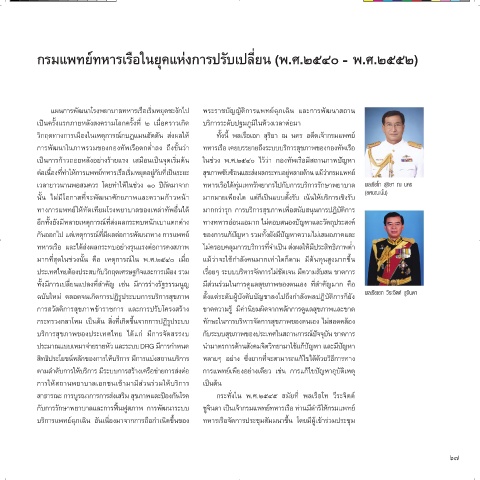 ฉบับใหม่ ตลอดจนเกิดการปฏิรูประบบการบริการสุขภาพ ตั้งแต่ระดับผู้บังคับบัญชาลงไปถึงก�าลังพลปฏิบัติการก็ยัง พลเรือเอก วีระจิตต์ ชูจินดา