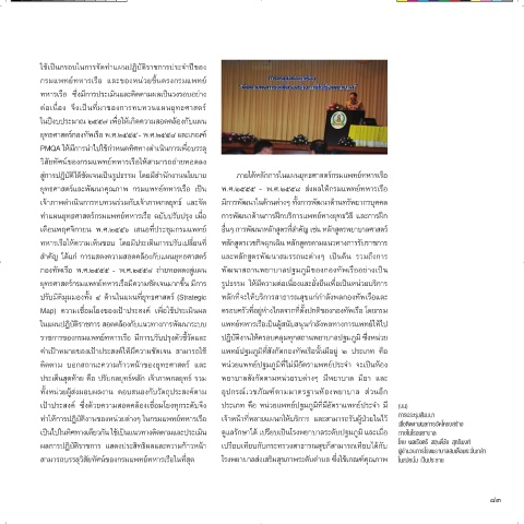 ปรับมิติมุมมองทั้ง ๔ ด้านในแผนที่ยุทธศาสตร์ (Strategic หลักที่จะให้บริการสาธารณสุขแก่ก�าลังพลกองทัพเรือและ
