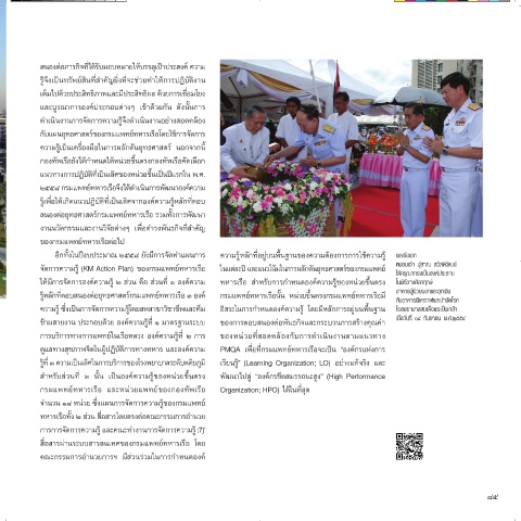 อีกทั้งในปีงบประมาณ ๒๕๕8 ยังมีการจัดท�าแผนการ ความรู้หลักที่อยู่บนพื้นฐานของความต้องการการใช้ความรู้ พลเรือเอก