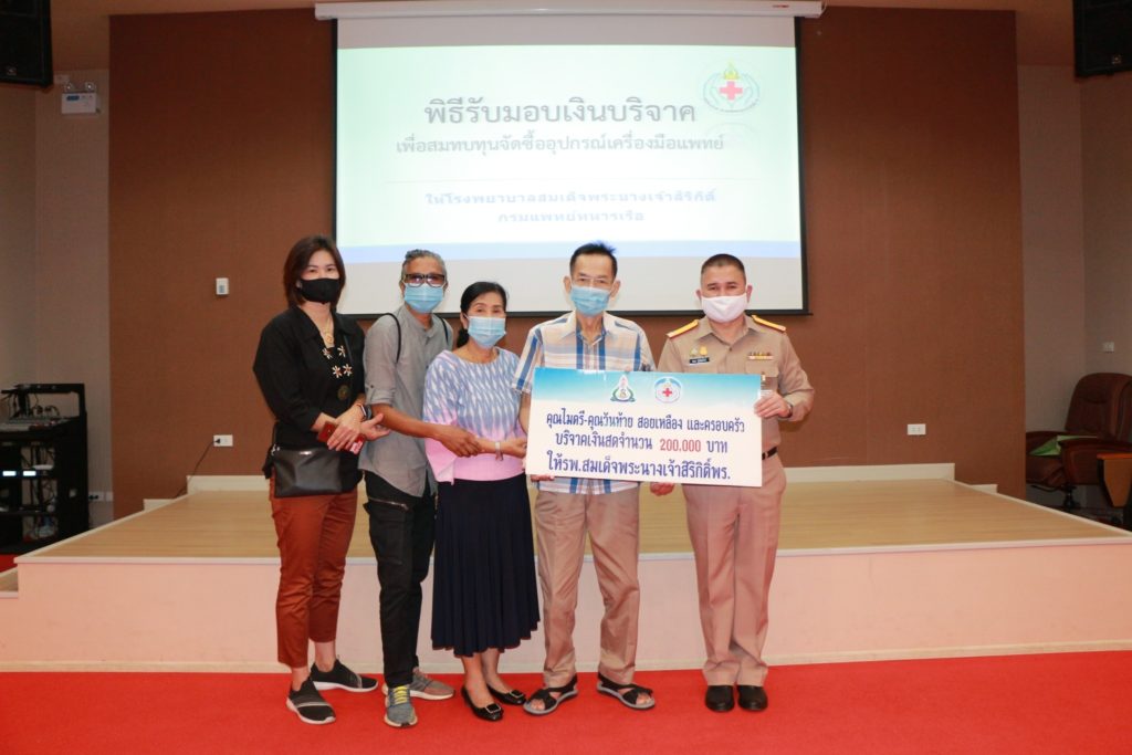 ๒๗ ต.ค. ๖๓ น.อ.สราวุฒิ พลเสน หน.กลุ่มงานอายุรเวชกรรม รพ.สมเด็จพระนางเจ้าสิริกิติ์ พร. รับมอบเงินบริจาคจำนวน ๕๐,๐๐๐ บาท จาก นพ.มนูญ – คุณณัฐกานต์ สำราญถิ่น เพื่อสนับสนุนศูนย์หัวใจ รพ.ฯ