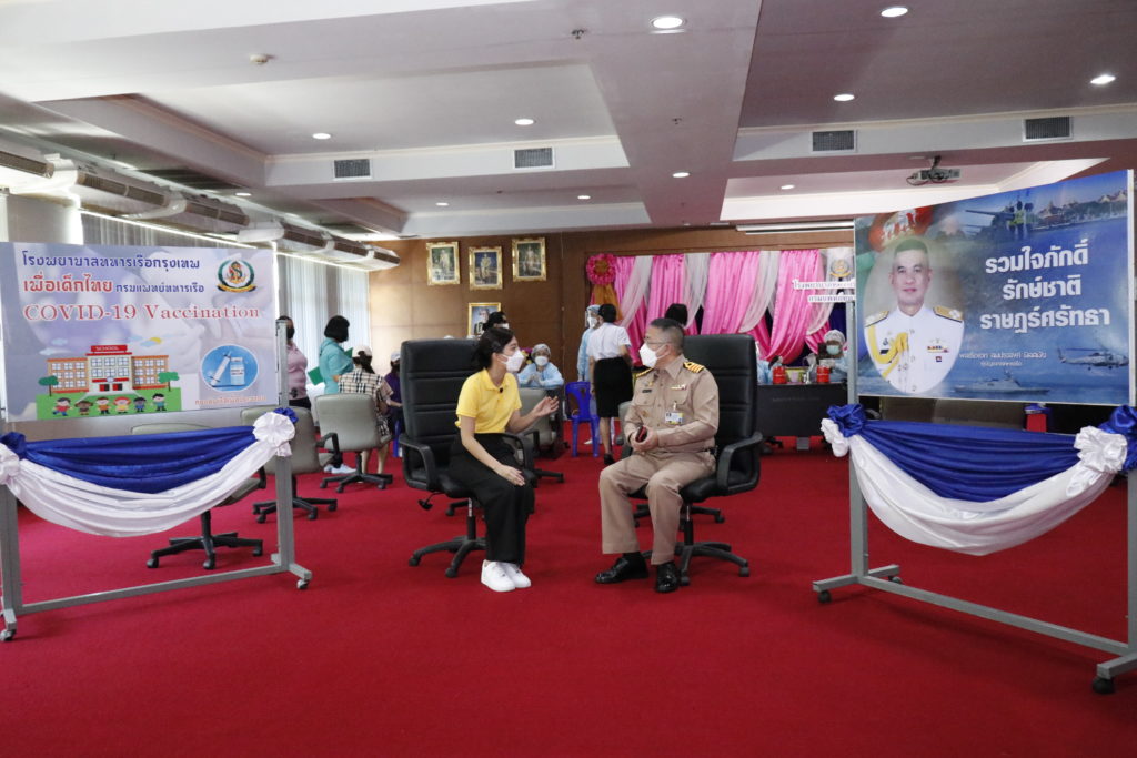เมื่อ ๒๕ ต.ค.๖๔ นาวาเอก ก่อพงศ์ หังสพฤกษ์ ผู้อำนวยการโรงพยาบาลทหารเรือกรุงเทพ กรมแพทย์ทหารเรือ ได้ให้สัมภาษณ์ กับรายการทหารเรือเล่าข่าว #เกาะติดสถานการณ์ เกี่ยวกับกิจกรรมการฉีดวัคซีนให้กับเด็กนักเรียน