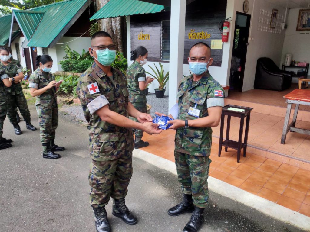เมื่อวันที่ 03 พ.ค.64 กองทัพเรือ โดย กองบัญชาการป้องกันชายแดนจันทบุรีและตราด จัดกิจกรรม “กปช.จต. หมอเดินเท้า..เข้าหาชุมชน” โดยจัดกำลังพลจำนวน 9 นาย (ประกอบด้วย จนท. กพร.กปช.จต. จำนวน 2 นาย จนท.พยาบาล ร้อย.พ.กอง สนช.กจต. จำนวน 2 นาย จนท.ร้อย.รยบ.ฯ จำนวน 1 นาย และ จนท.มว.ปจว.กจต. จำนวน 4 นาย) เข้าเยี่ยมเยียนประชาชน ผู้สูงอายุ ผู้พิการทางสมอง และผู้ป่วยติดเตียง ในพื้นที่ อบต.ท่าช้าง อ.เมืองจันทบุรี จว.จันทบุรี รวมจำนวน 5 ครอบครัว กิจกรรมในครั้งนี้ นายสมบูรณ์ บำรุงพนิชถาวร นายก อบต.ท่าช้าง และ จนท. รวม 6 คน ร่วมกิจกรรม เพื่อแบ่งเบาภาระหน้าที่ของ จนท.สาธารณ ซึ่งกิจกรรมในครั้งนี้ประกอบด้วย การตรวจวัดอุณหภูมิ การรักษาพยาบาลขั้นต้น มอบหน้ากากอนามัย เครื่องบริโภค และให้ความรู้เกี่ยวกับมาตรการป้องกันการติดเชื้อไวรัสโคโรนา 2019 (Covid-19) เพื่อเป็นกำลังใจและบรรเทาความเดือดร้อนในสถานการณ์การแพร่ระบาดของโรคติดเชื้อไวรัสโคโรนา 2019 (Covid-19) การปฏิบัติเป็นไปด้วยความเรียบร้อย กปช.จต. / หน่วยขึ้นตรง เมื่อวันที่ 03 พ.ค.64 กองทัพเรือ โดย กองบัญชาการป้องกันชายแดนจันทบุรีและตราด จัดกิจกรรม “กปช.จต. หมอเดินเท้า..เข้าหาชุมชน” โดยจัดกำลังพลจำนวน 9 นาย (ประกอบด้วย จนท. กพร.กปช.จต. จำนวน 2 นาย จนท.พยาบาล ร้อย.พ.กอง สนช.กจต. จำนวน 2 นาย จนท.ร้อย.รยบ.ฯ จำนวน 1 นาย และ จนท.มว.ปจว.กจต. จำนวน 4 นาย) เข้าเยี่ยมเยียนประชาชน ผู้สูงอายุ ผู้พิการทางสมอง และผู้ป่วยติดเตียง ในพื้นที่ อบต.ท่าช้าง อ.เมืองจันทบุรี จว.จันทบุรี รวมจำนวน 5 ครอบครัว กิจกรรมในครั้งนี้ นายสมบูรณ์ บำรุงพนิชถาวร นายก อบต.ท่าช้าง และ จนท. รวม 6 คน ร่วมกิจกรรม เพื่อแบ่งเบาภาระหน้าที่ของ จนท.สาธารณ ซึ่งกิจกรรมในครั้งนี้ประกอบด้วย การตรวจวัดอุณหภูมิ การรักษาพยาบาลขั้นต้น มอบหน้ากากอนามัย เครื่องบริโภค และให้ความรู้เกี่ยวกับมาตรการป้องกันการติดเชื้อไวรัสโคโรนา 2019 (Covid-19) เพื่อเป็นกำลังใจและบรรเทาความเดือดร้อนในสถานการณ์การแพร่ระบาดของโรคติดเชื้อไวรัสโคโรนา 2019 (Covid-19) การปฏิบัติเป็นไปด้วยความเรียบร้อย Read More »
