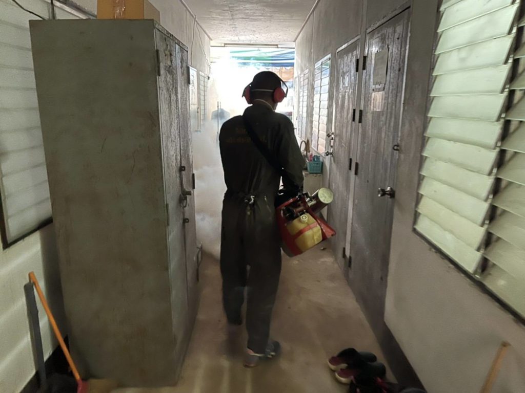 เมื่อวันที่ 27 เม.ย.64 ร้อย.พ.กอง สนช.กจต. ดำเนินการสำรวจลูกน้ำยุงลาย ทำลายแหล่งเพาะพันธุ์ หยอดทรายอะเบท พร้อมทั้งให้คำแนะนำกำลังพลตามหน่วยต่าง ๆ กำชับให้ช่วยกันดูแลความสะอาด รอบ ๆ พื้นที่ไม่ให้มีภาชนะน้ำขัง ที่เป็นแหล่งเพาะพันธุ์ลูกน้ำยุงลายเพื่อป้องกันการเกิดโรคไข้เลือดออกภายในค่ายตากสิน ผลการดำเนินงานเป็นไปด้วยความเรียบร้อย กปช.จต. / หน่วยขึ้นตรง เมื่อวันที่ 27 เม.ย.64 ร้อย.พ.กอง สนช.กจต. ดำเนินการสำรวจลูกน้ำยุงลาย ทำลายแหล่งเพาะพันธุ์ หยอดทรายอะเบท พร้อมทั้งให้คำแนะนำกำลังพลตามหน่วยต่าง ๆ กำชับให้ช่วยกันดูแลความสะอาด รอบ ๆ พื้นที่ไม่ให้มีภาชนะน้ำขัง ที่เป็นแหล่งเพาะพันธุ์ลูกน้ำยุงลายเพื่อป้องกันการเกิดโรคไข้เลือดออกภายในค่ายตากสิน ผลการดำเนินงานเป็นไปด้วยความเรียบร้อย Read More »