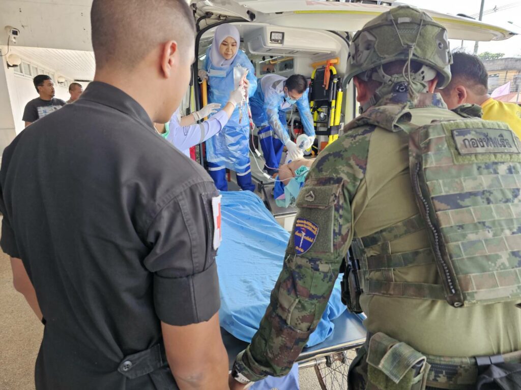 เมื่อ ๑๖ มิ.ย.๖๘ เกิดเหตุระเบิดบริเวณทางเข้าบ้านยามูแรแน ม.๔ ต.บาเระเหนือ อ.บาเจาะ จว.นราธิวาส ทำให้ อส.ทพ.พันธกาน อินทะเขื่อน ได้รับบาดเจ็บบริเวณใบหน้า และลำตัว นำตัวส่ง รพ.บาเจาะ จนท.พยาบาลให้เลือดและสารน้ำตามคำสั่งแพทย์ แต่เนื่องจากกระดูกใบหน้าหักและมีอาการบวม จึงส่งต่อรักษาโรงพยาบาลนราธิวาส แพทย์ทำการใส่ท่อช่วยหายใจ multiple maxilo facial trauma นำสะเก็ดระเบิดที่ฝังบริเวณใบหน้าออก ให้ยาฆ่าเชื้อ และยาระงับประสาท เพื่อส่งต่อผู้บาดเจ็บรักษาต่อยังโรงพยาบาลสงขลานครินทร์ต่อไป พัน.พ.กรม สน.พล.นย. / ข่าวผู้บังคับบัญชา เมื่อ ๑๖ มิ.ย.๖๘ เกิดเหตุระเบิดบริเวณทางเข้าบ้านยามูแรแน ม.๔ ต.บาเระเหนือ อ.บาเจาะ จว.นราธิวาส ทำให้ อส.ทพ.พันธกาน อินทะเขื่อน ได้รับบาดเจ็บบริเวณใบหน้า และลำตัว นำตัวส่ง รพ.บาเจาะ จนท.พยาบาลให้เลือดและสารน้ำตามคำสั่งแพทย์ แต่เนื่องจากกระดูกใบหน้าหักและมีอาการบวม จึงส่งต่อรักษาโรงพยาบาลนราธิวาส แพทย์ทำการใส่ท่อช่วยหายใจ multiple maxilo facial trauma นำสะเก็ดระเบิดที่ฝังบริเวณใบหน้าออก ให้ยาฆ่าเชื้อ และยาระงับประสาท เพื่อส่งต่อผู้บาดเจ็บรักษาต่อยังโรงพยาบาลสงขลานครินทร์ต่อไป Read More »