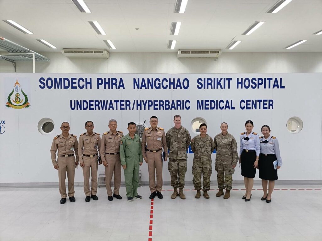 เมื่อ ๓๐ ต.ค.๖๘ น.อ.พัลลภ สุภากรณ์ รอง ผอ.รพ.สมเด็จพระนางเจ้าสิริกิติ์ พร. และ น.อ.เฉลิมพล ทองรมย์ ผช.ผอ.รพ. และคณะ ให้การต้อนรับคณะผู้แทนกองกำลังสหรัฐอเมริกาภาคพื้นอินโดแปซิฟิก นำโดย Col. John Pederson ผู้แทนกองอำนวยการฝึกทางการแพทย์ COBRA GOLD ๒๐๒๖ ในกิจกรรม Hospital Tour เยี่ยมชมดูงานในหน่วยห้องปฏิบัติการสวนหัวใจ หอผู้ป่วยวิกฤต แผนกธนาคารเลือด ห้องตรวจโรคฉุกเฉิน และศูนย์เวชศาสตร์ความดันบรรยากาศสูง ณ รพ.สมเด็จพระนางเจ้าสิริกิติ์ พร.รพ.สมเด็จพระนางเจ้าสิริกิติ์ พร. / ข่าวผู้บังคับบัญชา เมื่อ ๓๐ ต.ค.๖๘ น.อ.พัลลภ สุภากรณ์ รอง ผอ.รพ.สมเด็จพระนางเจ้าสิริกิติ์ พร. และ น.อ.เฉลิมพล ทองรมย์ ผช.ผอ.รพ. และคณะ ให้การต้อนรับคณะผู้แทนกองกำลังสหรัฐอเมริกาภาคพื้นอินโดแปซิฟิก นำโดย Col. John Pederson ผู้แทนกองอำนวยการฝึกทางการแพทย์ COBRA GOLD ๒๐๒๖ ในกิจกรรม Hospital Tour เยี่ยมชมดูงานในหน่วยห้องปฏิบัติการสวนหัวใจ หอผู้ป่วยวิกฤต แผนกธนาคารเลือด ห้องตรวจโรคฉุกเฉิน และศูนย์เวชศาสตร์ความดันบรรยากาศสูง ณ รพ.สมเด็จพระนางเจ้าสิริกิติ์ พร. Read More »