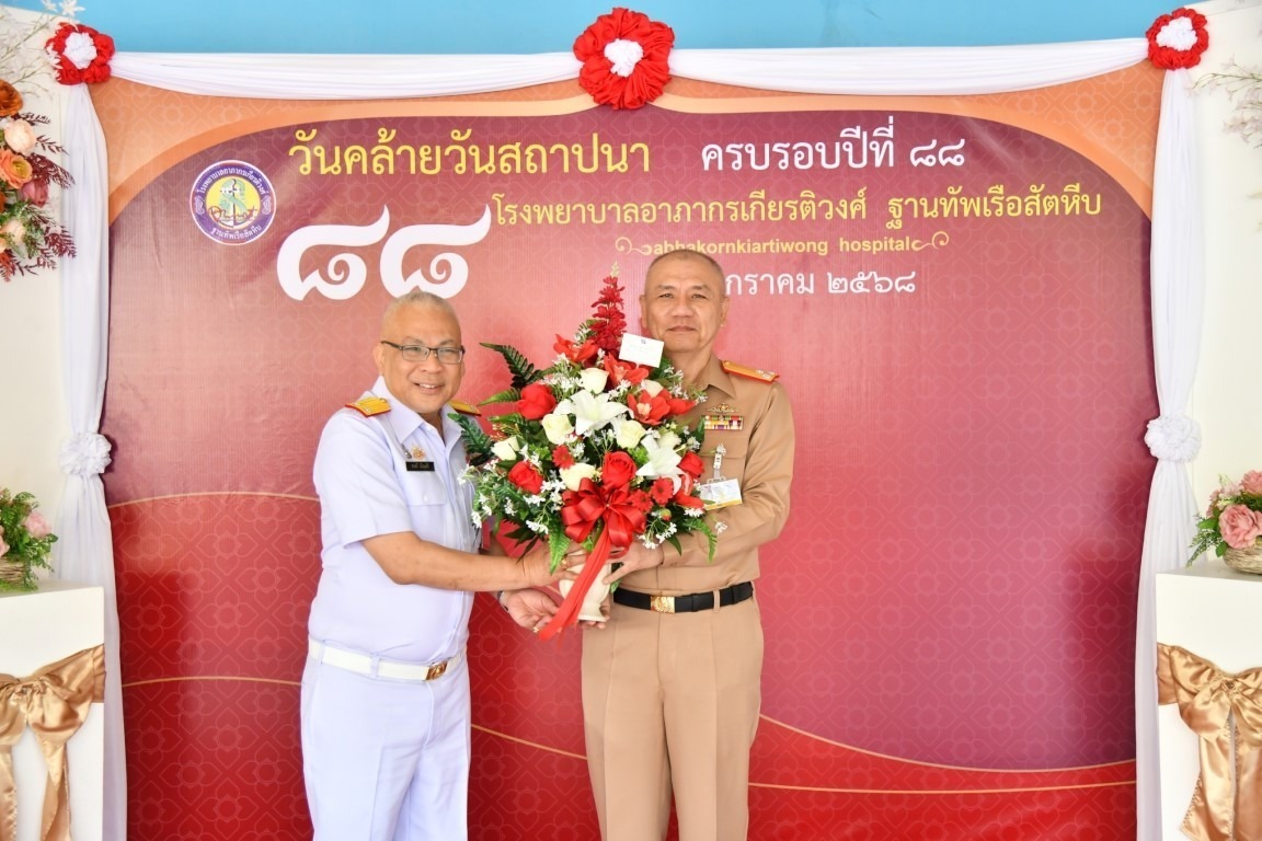 พลเรือโท ประทีป ตังติสานนท์ เจ้ากรมแพทย์ทหารเรือ ร่วมพิธีทำบุญเนื่องในวันคล้ายวันสถาปนาโรงพยาบาลอาภากรเกียรติวงศ์ ฐานทัพเรือสัตหีบ ครบรอบ ๘๘ ปี เมื่อ ๑๕ ม.ค.๖๘ ข่าวผู้บังคับบัญชา 16 มกราคม 2568