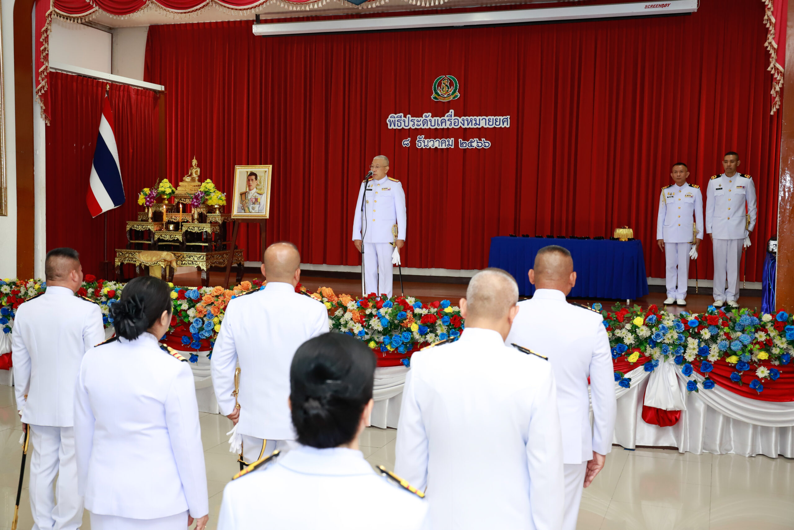 พลเรือโท ณัฐ อิศรางกูร ณ อยุธยา เจ้ากรมแพทย์ทหารเรือ เป็นประธานในพิธีประดับเครื่องหมายยศให้แก่นายสัญญาบัตร สังกัดกรมแพทย์ทหารเรือ ที่ได้รับการเลื่อนยศสูงขึ้น เมื่อวันที่ ๘ ธ.ค.๖๖ ข่าวผู้บังคับบัญชา 8 ธันวาคม 2566