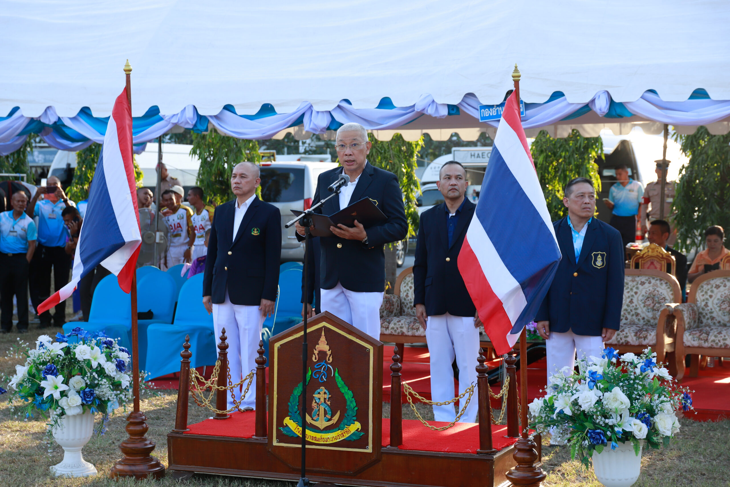 พลเรือโท ณัฐ อิศรางกูร ณ อยุธยา เจ้ากรมแพทย์ทหารเรือ เป็นประธานในพิธีปิดการแข่งขันกีฬาภายในกรมแพทย์ทหารเรือ ประจำปี ๒๕๖๖ เมื่อ ๒๗ ธ.ค.๖๖ ข่าวผู้บังคับบัญชา 28 ธันวาคม 2566