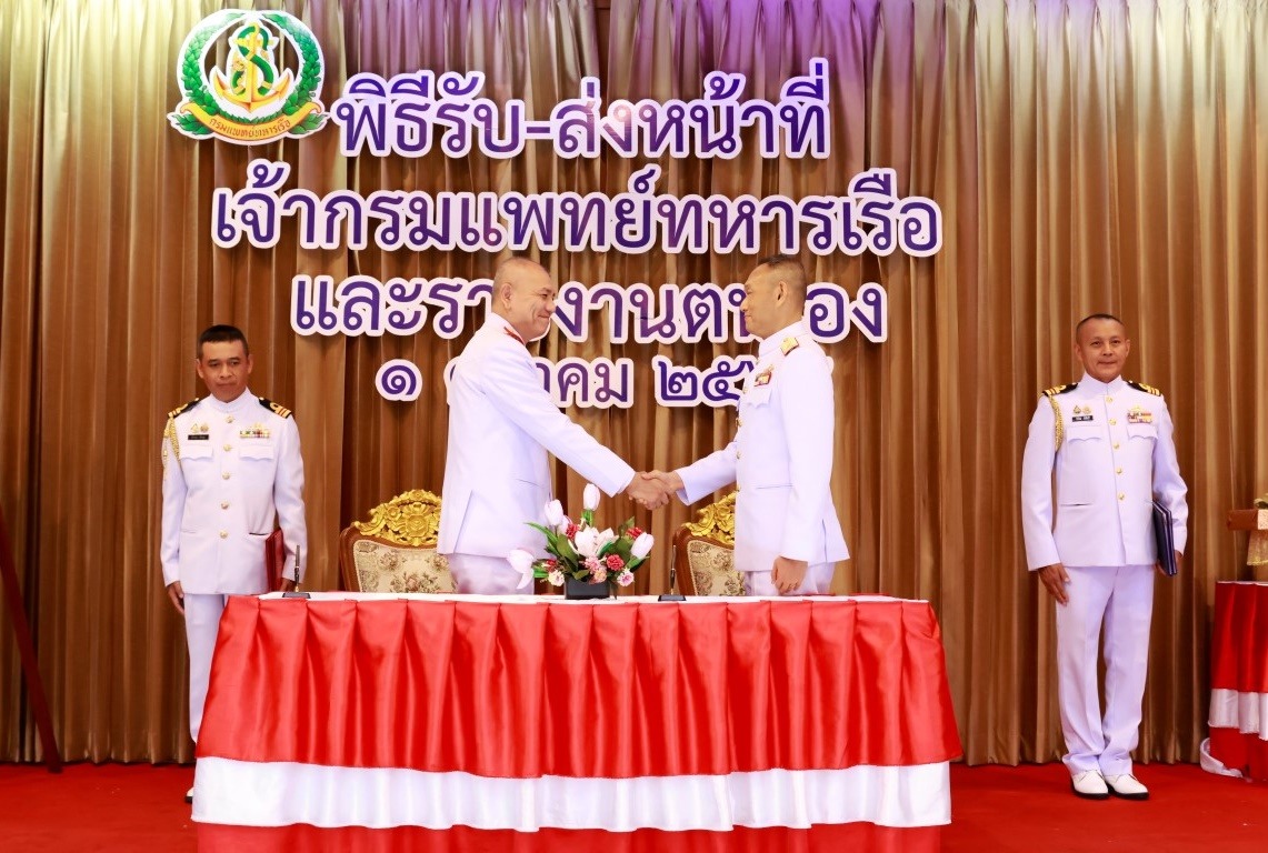 พลเรือโท ประทีป ตังติสานนท์ ส่งมอบหน้าที่เจ้ากรมแพทย์ทหารเรือและการบังคับบัญชาให้ พลเรือโท สมชาย จันทโรธร เมื่อวันที่ ๑ ต.ค.๖๘ ข่าวผู้บังคับบัญชา 2 ตุลาคม 2568