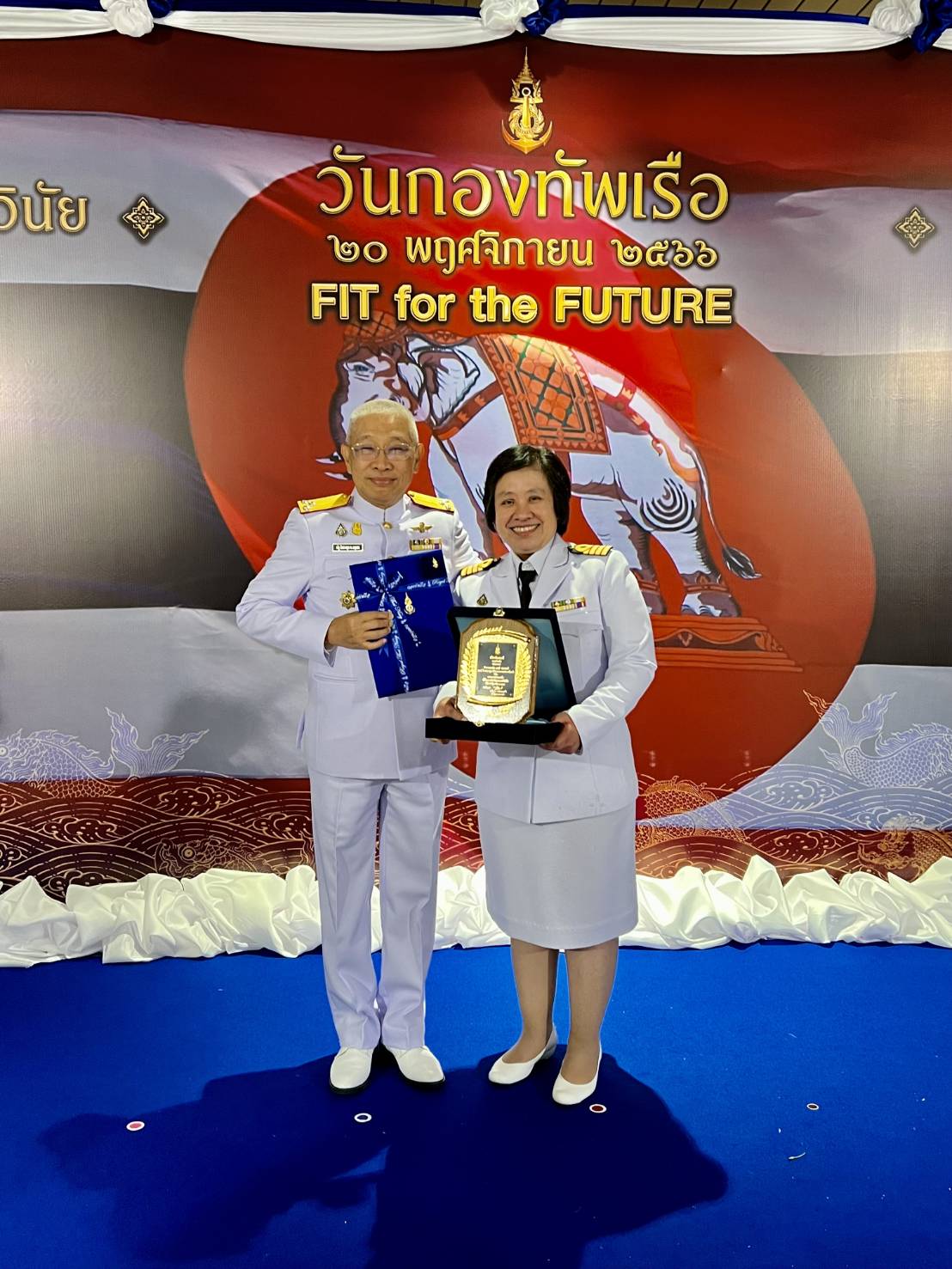 พลเรือโท ณัฐ อิศรางกูร ณ อยุธยา เจ้ากรมแพทย์ทหารเรือ ร่วมแสดงความยินดีแก่ นาวาเอกหญิง ภาศรี มหารมณ์ หัวหน้าศูนย์การแพทย์แผนไทยหมอพรและการแพทย์ผสมผสาน และอายุรแพทย์โรคติดเชื้อ โรงพยาบาลสมเด็จพระปิ่นเกล้า กรมแพทย์ทหารเรือ เมื่อ ๒๑ พ.ย.๖๖ ข่าวผู้บังคับบัญชา 22 พฤศจิกายน 2566