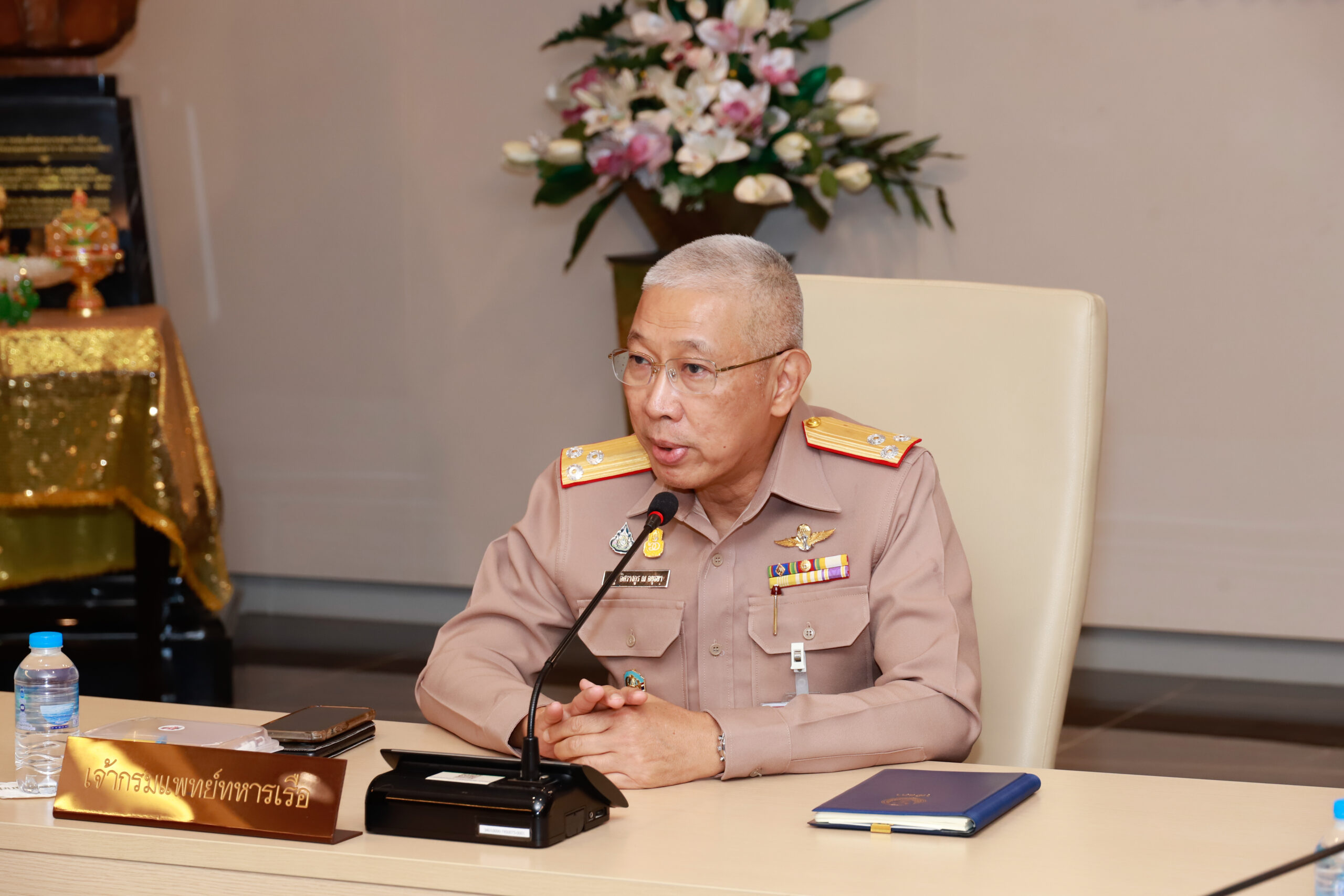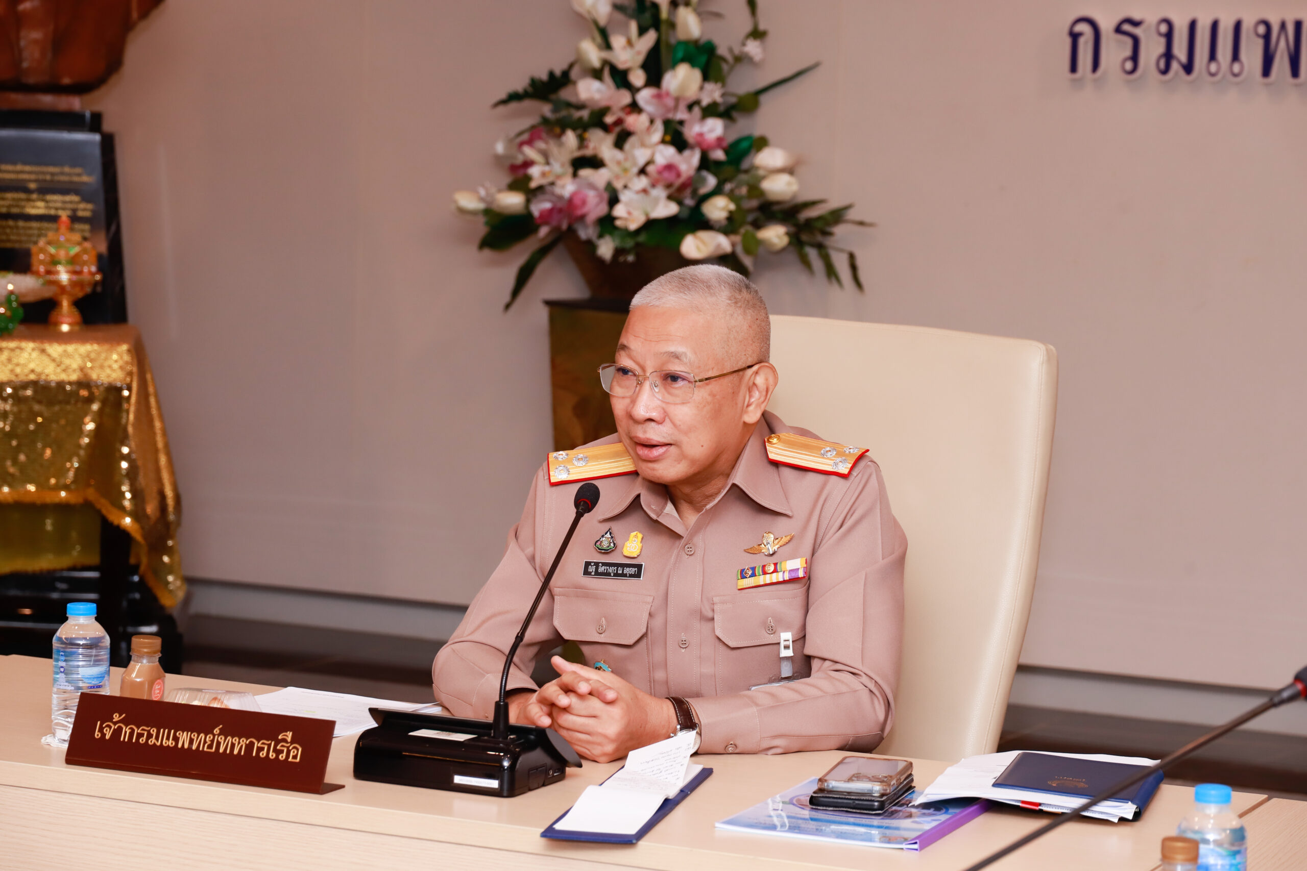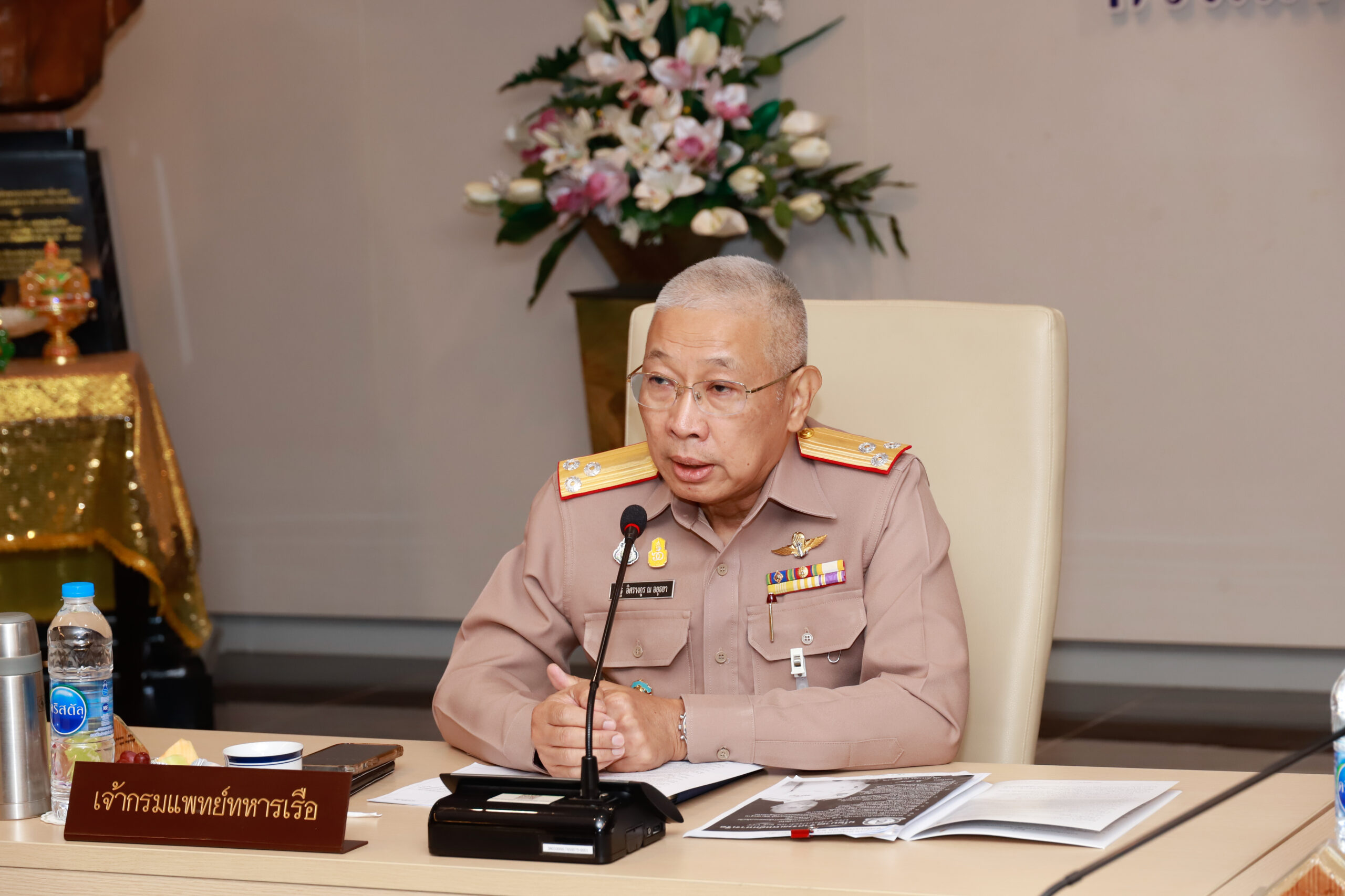 พลเรือโท ณัฐ อิศรางกูร ณ อยุธยา เจ้ากรมแพทย์ทหารเรือ ให้โอวาทแก่ กองเวชกรรมป้องกัน กรมแพทย์ทหารเรือ นำโดย นาวาเอก ธนษวัฒน์ ชัยกุล ผู้อำนวยการกองเวชกรรมป้องกัน กรมแพทย์ทหารเรือ ในการดำเนินกิจกรรมพัฒนาและสร้างเสริมสุขภาพ เมื่อ ๘ พ.ย.๖๖ ข่าวผู้บังคับบัญชา 10 พฤศจิกายน 2566
