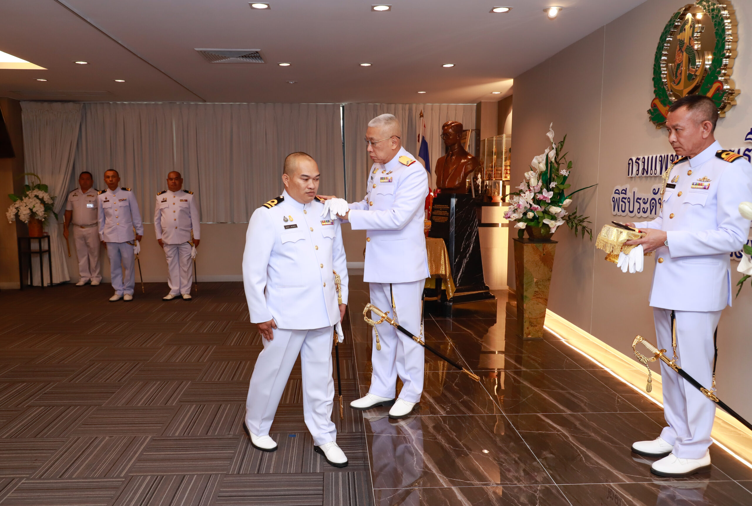 พลเรือโท ณัฐ อิศรางกูร ณ อยุธยา เจ้ากรมแพทย์ทหารเรือ เป็นประธานในพิธีประดับเครื่องหมายยศให้แก่นายสัญญาบัตร สังกัดกรมแพทย์ทหารเรือ ที่ได้รับการเลื่อนยศสูงขึ้น เมื่อวันที่ ๒๓ พ.ย.๖๖ ข่าวผู้บังคับบัญชา 23 พฤศจิกายน 2566