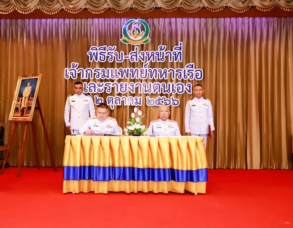 พลเรือโท ชลธร สุวรรณกิตติ ส่งมอบหน้าที่เจ้ากรมแพทย์ทหารเรือและการบังคับบัญชาให้ พลเรือโท ณัฐ อิศรางกูร ณ อยุธยา เมื่อวันที่ ๒ ต.ค.๖๖ เวลา (๑๐๓๐) ข่าวผู้บังคับบัญชา 3 ตุลาคม 2566