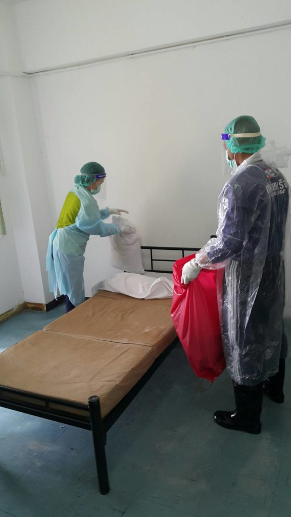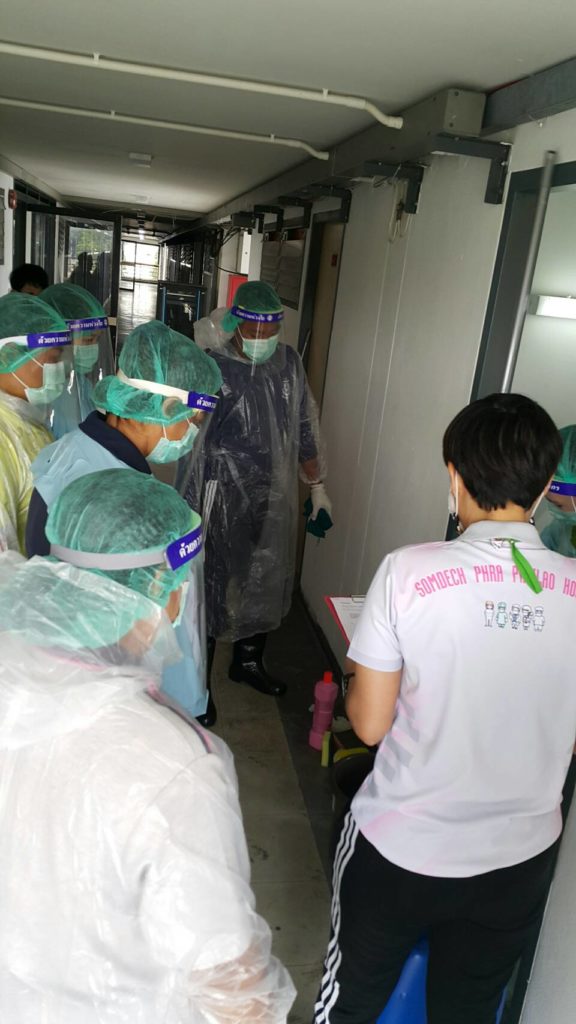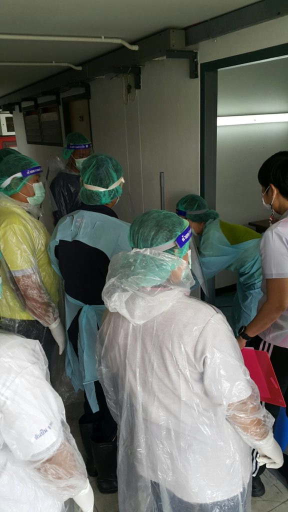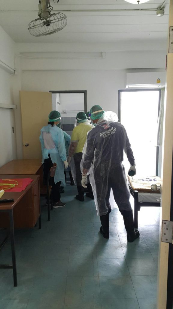 วันที่ 12 ม.ค.64 พล.ร.ต.หญิง สุพิชชา แสงโชติ รอง จก.พร. และเจ้าหน้าที่แผนกควบคุมการติดเชื้อ รพ.สมเด็จพระปิ่นเกล้า พร. สาธิตและอบรมการสวมใส่อุปกรณ์ป้องกันร่างกายตามลักษณะการใช้งานและสาธิตการทำความสะอาดพื้นที่ ให้กับเจ้าหน้าที่ปฏิบัติงาน SQ ยศ.ทร.
