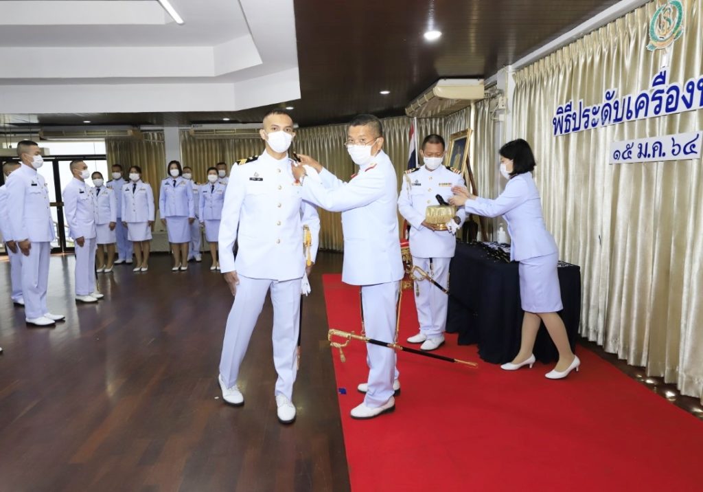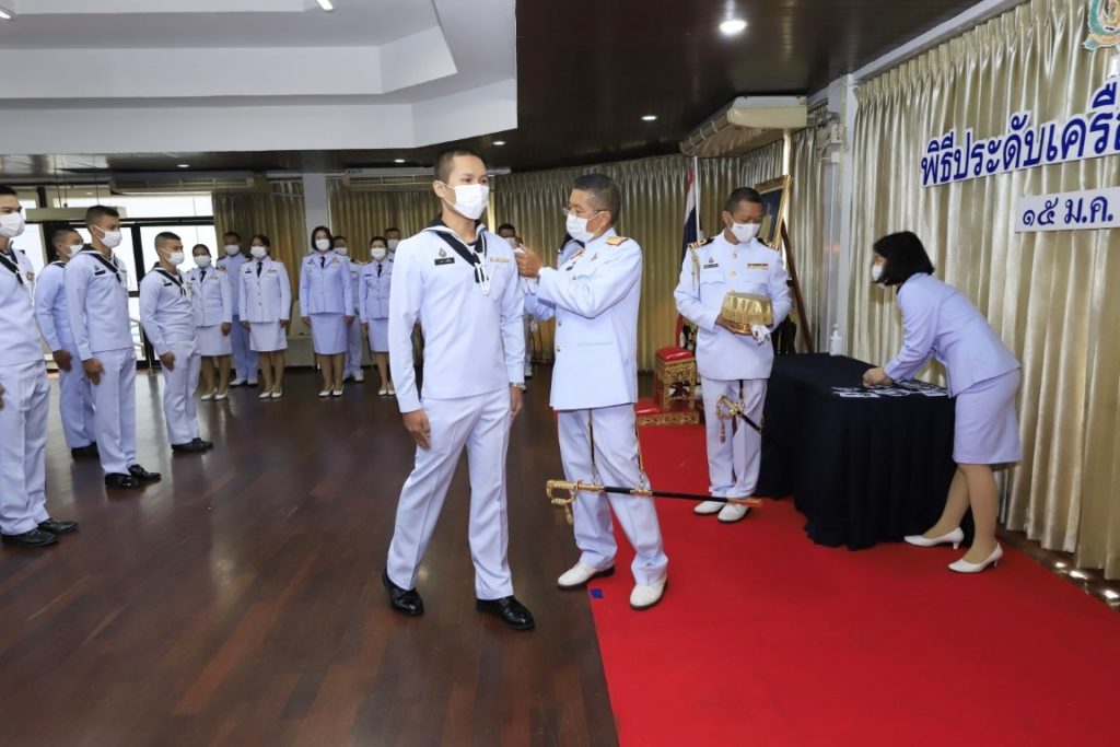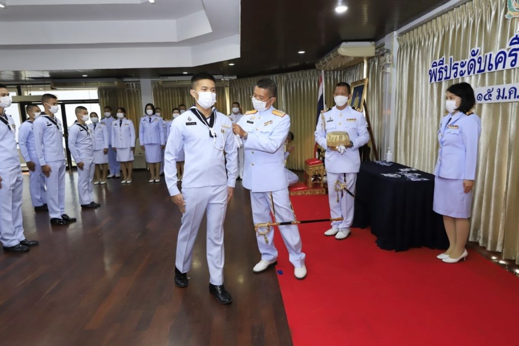 พลเรือโท วิชัย มนัสศิริวิทยา เจ้ากรมแพทย์ทหารเรือ เป็นประธานในพิธีประดับเครื่องหมายยศให้แก่นายทหารชั้นประทวนที่ได้รับการเลื่อนยศ ณ ห้องปิ่นเพชร สโมสรกรมแพทย์ทหารเรือ เมื่อวันที่ ๑๕ มกราคม พ.ศ.๒๕๖๔