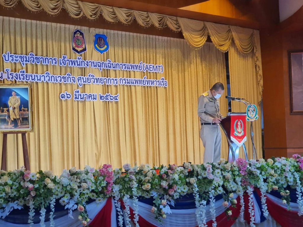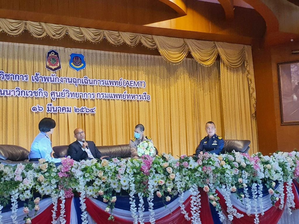 พลเรือตรี สุรสิงห์ ประไพพานิช รองเจ้ากรมแพทย์ทหารเรือ เป็นประธานการจัดโครงการเพิ่มพูนทักษะด้านการแพทย์ฉุกเฉิน และประชุมวิชาการเจ้าพนักงานฉุกเฉินการแพทย์ (AEMT) ครั้งที่ ๑ ณ ห้องปิ่นเกล้า สโมสรกรมแพทย์ทหารเรือ เมื่อวันที่ ๑๖ มีนาคม พ.ศ.๒๕๖๔
