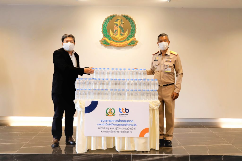 ๑๑ พ.ค.๖๔ พลเรือโท วิชัย มนัสศิริวิทยา เจ้ากรมแพทย์ทหารเรือ รับมอบน้ำดื่มให้กรมแพทย์ทหารเรือ เพื่อสนับสนุนการปฏิบัติงานของเจ้าหน้าที่ในการรองรับสถานการณ์โควิด-19 จากผู้ช่วยกรรมการผู้จัดการใหญ่ ธนาคารทหารไทย