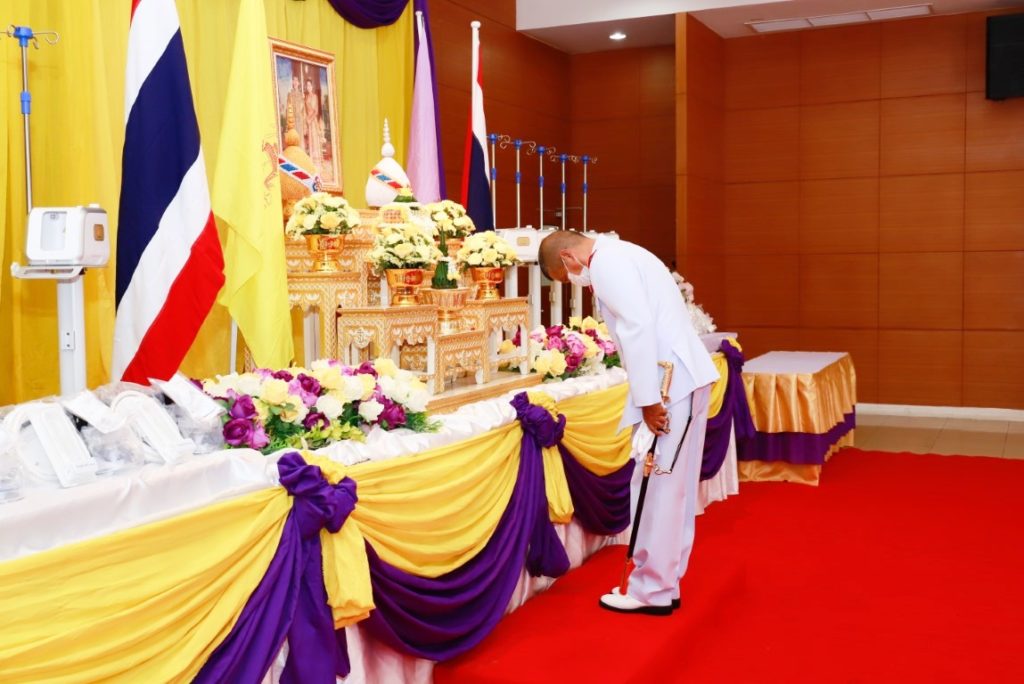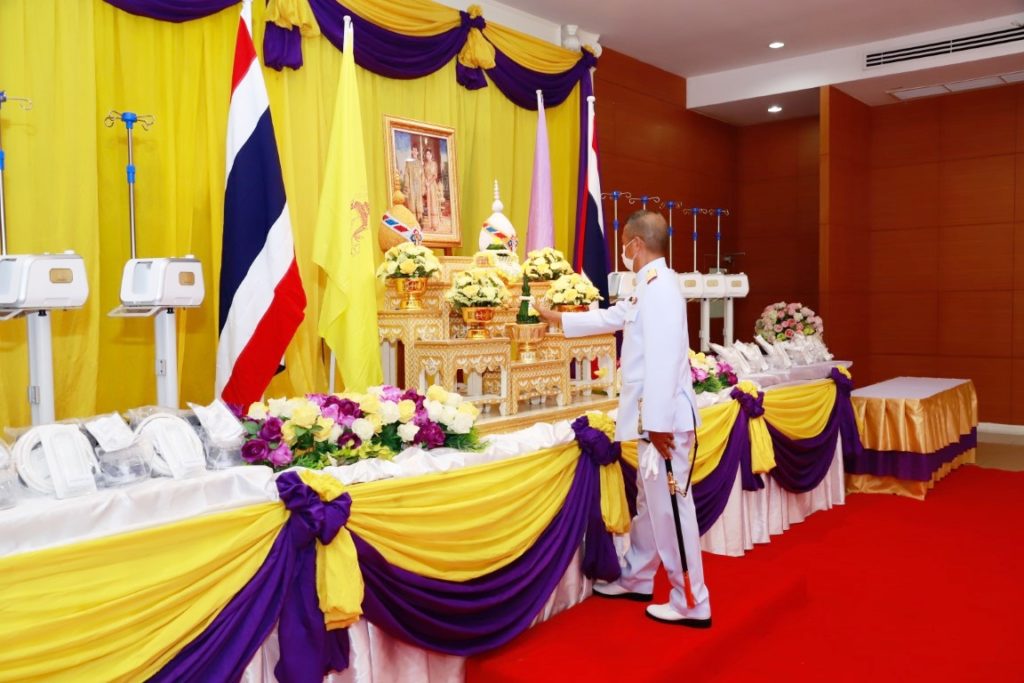 พระบาทสมเด็จพระปรเมนทรรามาธิบดีศรีสินทรมหาวชิราลงกรณ พระวชิรเกล้าเจ้าอยู่หัว และสมเด็จพระนางเจ้าสุทิดา พัชรสุธาพิมลลักษณ พระบรมราชินี ทรงพระกรุณาโปรดเกล้าฯ พระราชทานเครื่อง Oxygen High Flow แก่โรงพยาบาลสมเด็จพระปิ่นเกล้า กรมแพทย์ทหารเรือ จำนวน ๑๐ เครื่อง เพื่อนำไปใช้รักษาผู้ป่วยโควิด-19 ที่อยู่ในภาวะบกพร่องทางการหายใจ หรือผู้ป่วยหนักอื่นๆ ที่ต้องเร่งรักษา โดยมี พลเรือโท วิชัย มนัสศิริวิทยา เจ้ากรมแพทย์ทหารเรือ และผู้บังคับบัญชาของกรมแพทย์ทหารเรือ เป็นผู้รับมอบฯ ณ ห้องประพัฒน์ศรี สโมสรโรงพยาบาลสมเด็จพระปิ่นเกล้า กรมแพทย์ทหารเรือ เมื่อวันที่ ๒๑ พฤษภาคม ๒๕๖๔