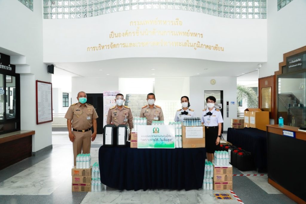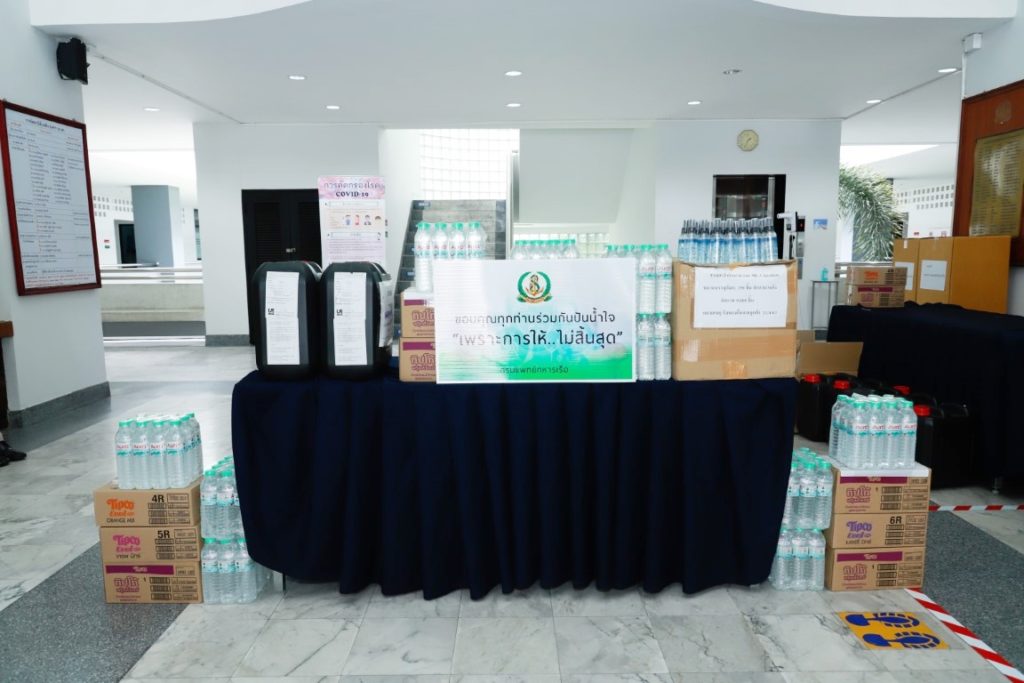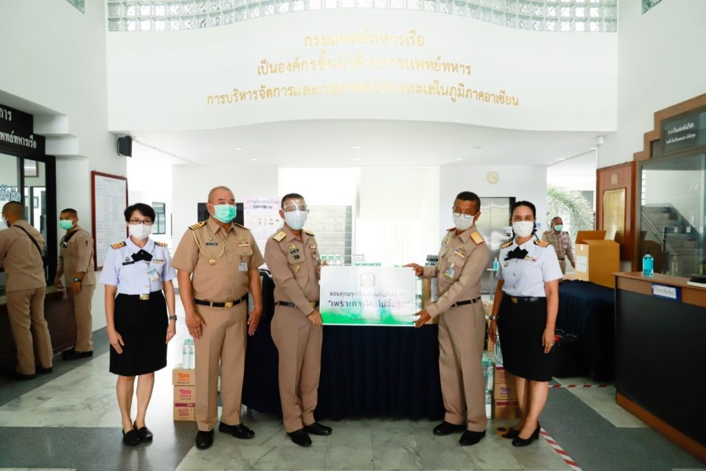 พลเรือเอก เชษฐา ใจเปี่ยม โฆษกกองทัพเรือ รับมอบสิ่งของ และน้ำดื่มจากคุณ เขมนิจ จามิกรณ์ ได้แก่ แอลกอฮอล์ ๒๐ ลิตร จำนวน ๑๐ แกลอน , Tipco cool จำนวน ๒๐ ลัง แอลกอฮอล์แบบสเปรย์ขนาด ๑๐๐ มิลลิลิตร จำนวน ๕๐๐ ขวด น้ำดื่มออร่า จำนวน ๑๐ แพ็ค และนำมามอบให้โรงพยาบาลสมเด็จพระปิ่นเกล้า กรมแพทย์ทหารเรือ เพื่อสนันสนุนการปฏิบัติงานในสถานการณ์การแพร่ระบาดของ Covid-19 โดยมี พลเรือโท วิชัย มนัสศิริวิทยา เจ้ากรมแพทย์ทหารเรือ เป็นผู้รับมอบฯ ณ อาคารกองบังคับการ กรมแพทย์ทหารเรือ ชั้น ๑ เมื่อวันที่ ๒๗ พฤษภาคม พ.ศ.๒๕๖๔