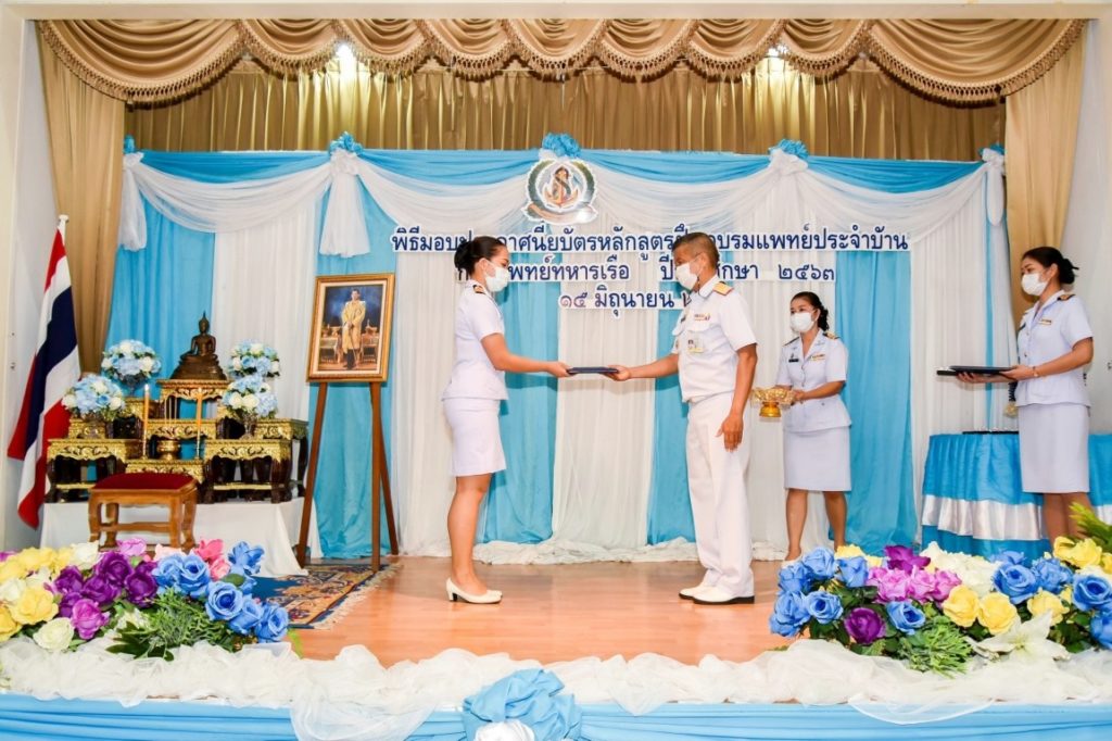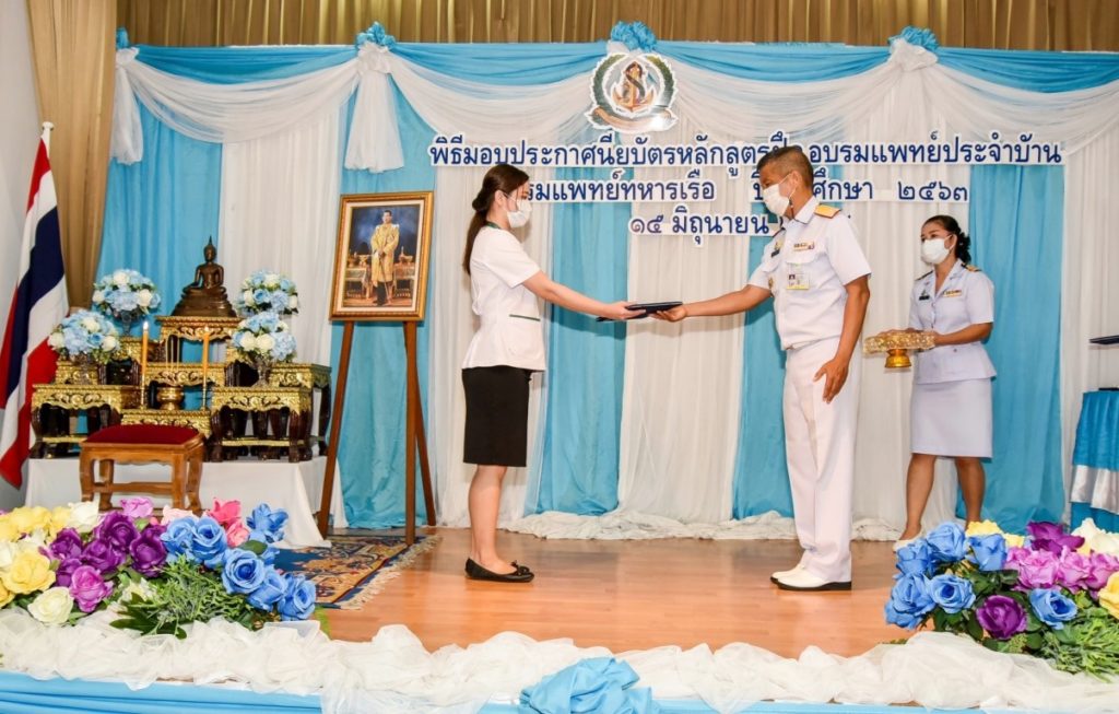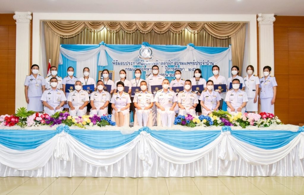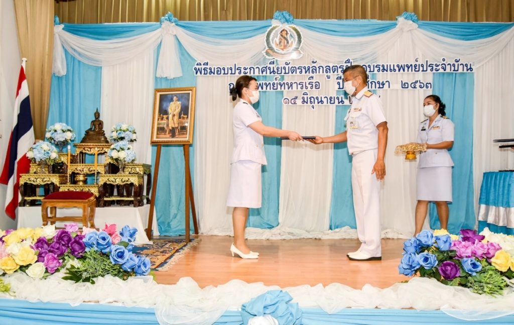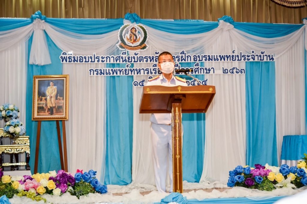พลเรือโท วิชัย มนัสศิริวิทยา เจ้ากรมแพทย์ทหารเรือ เป็นประธานพิธีมอบใบประกาศนียบัตรแก่ผู้สำเร็จการฝึกอบรมหลักสูตรแพทย์ประจำบ้าน กรมแพทย์ทหารเรือ ปีการศึกษา ๒๕๖๓ โดยมี พลเรือตรีหญิง สุพิชชา แสงโชติ รองเจ้ากรมแพทย์ทหารเรือ และพลเรือตรี นิธิ พงศ์อนันต์ ผู้อำนวยการโรงพยาบาลสมเด็จพระปิ่นเกล้า กรมแพทย์ทหารเรือ เข้าร่วมพิธีฯ ณ ห้องประพัฒน์ศรี สโมสรโรงพยาบาลสมเด็จพระปิ่นเกล้า กรมแพทย์ทหารเรือ เมื่อวันที่ ๑๕ มิถุนายน ๒๕๖๔