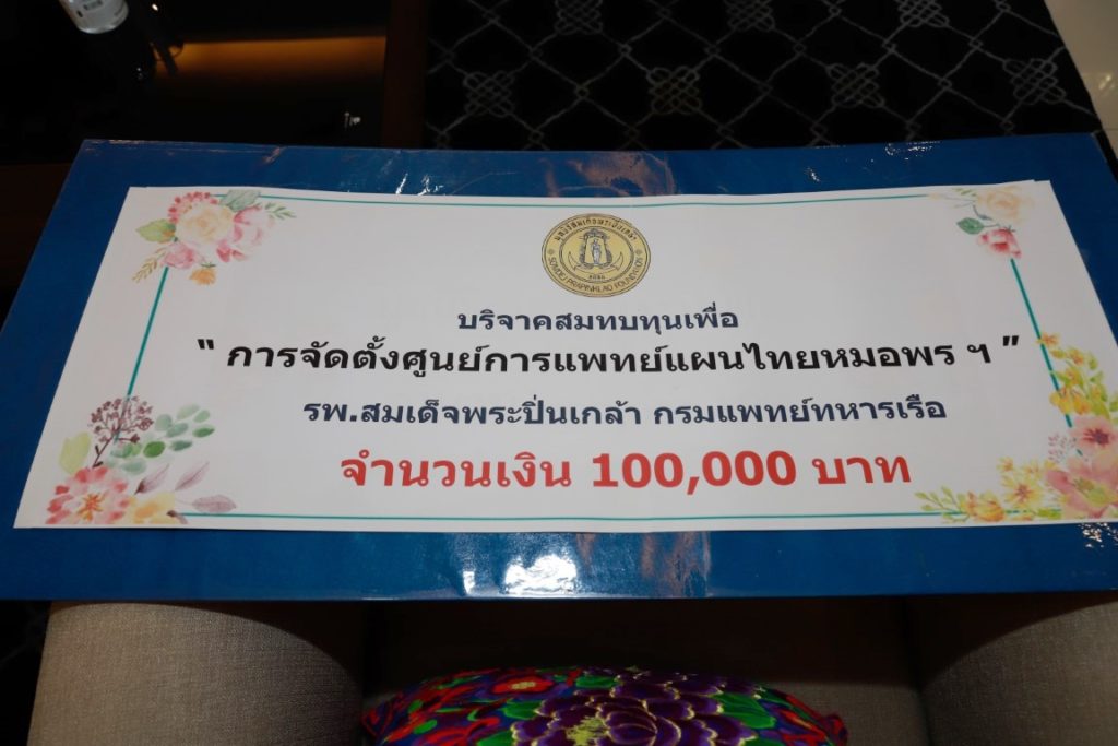 พลเรือเอก ลือชัย รุดดิษฐ์ และนาวาเอกหญิง อุบลวรรณ รุดดิษฐ์ นายทหารปฏิบัติการประจำกรมกำลังพลทหารเรือ มอบเงินบริจาคสมทบทุนเพื่อ “การจัดตั้งศูนย์การแพทย์แผนไทยหมอพรฯ” โรงพยาบาลสมเด็จพระปิ่นเกล้า กรมแพทย์ทหารเรือ โดยมี พลเรือโท วิชัย มนัสศิริวิทยา เจ้ากรมแพทย์ทหารเรือ เป็นผู้รับมอบฯ ณ ห้องรับรองพิเศษ อาคารผู้ป่วยนอกโรงพยาบาลสมเด็จพระปิ่นเกล้า กรมแพทย์ทหารเรือ เมื่อวันที่ ๑๘ มิถุนายน พ.ศ.๒๕๖๔