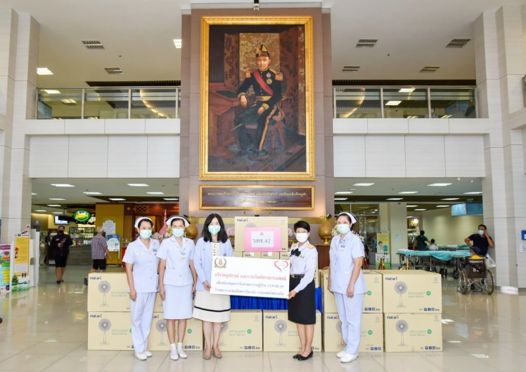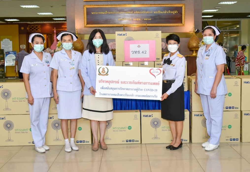 พลเรือตรีหญิง สุพิชชา แสงโชติ รองเจ้ากรมแพทย์ทหารเรือ รับบริจาค พัดลม อุปกรณ์ และเวชภัณฑ์ทางการแพทย์ ให้กับ โรงพยาบาลสมเด็จพระปิ่นเกล้า กรมแพทย์ทหารเรือ จากคณะ วทร.42 เพื่อสนับสนุนการรักษาพยาบาลผู้ป่วย COVID-19 ณ อาคารผู้ป่วยนอกโรงพยาบาลสมเด็จพระปิ่นเกล้า กรมแพทย์ทหารเรือ เมื่อวันที่ ๘ กรกฎาคม พ.ศ.๒๕๖๔