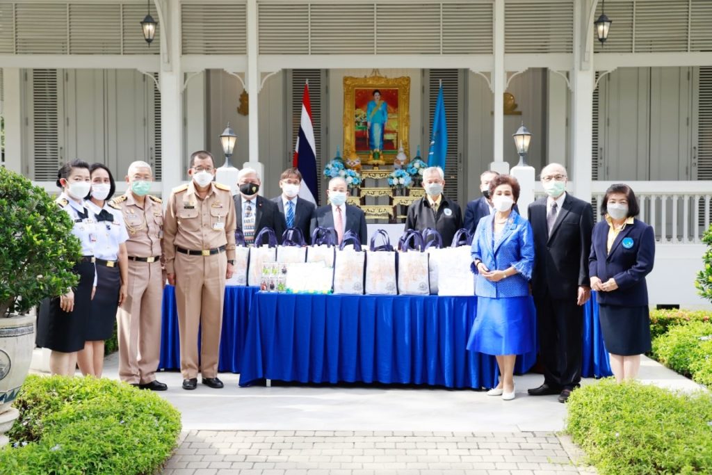 พลเรือตรี สุรสิงห์ ประไพพานิช รองเจ้ากรมแพทย์ทหารเรือ รับมอบชุดถุง “หมอพรห่วงใย เพิ่มพลังใจ” ให้แก่กรมแพทย์ทหารเรือ สำหรับผู้ป่วยติดเชื้อไวรัสโคโรนา-๒๐๑๙