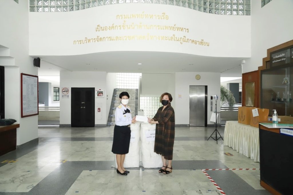 พลเรือตรีหญิง สุพิชชา แสงโชติ รองเจ้ากรมแพทย์ทหารเรือ รับมอบชุด PPE ให้แก่กรมแพทย์ทหารเรือ จากคุณ สุธีพร คุณ วิภารักษ์ และครอบครัว ณ อาคารกองบังคับการกรมแพทย์ทหารเรือ เมื่อวันที่ ๒ กันยายน พ.ศ.๒๕๖๔