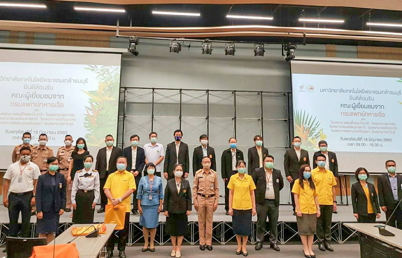 ๑๘ มิ.ย.๖๓ พลเรือโท วิชัย มนัสศิริวิทยา เจ้ากรมแพทย์ทหารเรือ พลเรือตรี ธนรักษ์ เอี่ยวสานุรักษ์ ผู้อำนวยการโรงพยาบาลสมเด็จพระปิ่นเกล้า กรมแพทย์ทหารเรือ และคณะเยี่ยมชมนวัตกรรมของมหาวิทยาลัยเทคโนโลยีพระจอมเกล้าธนบุรี