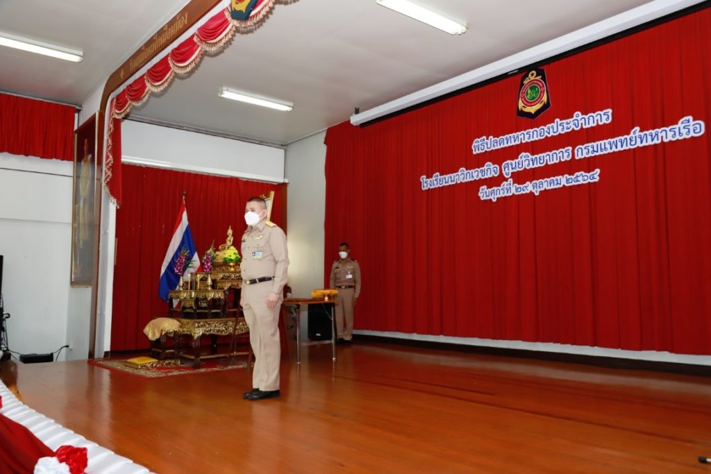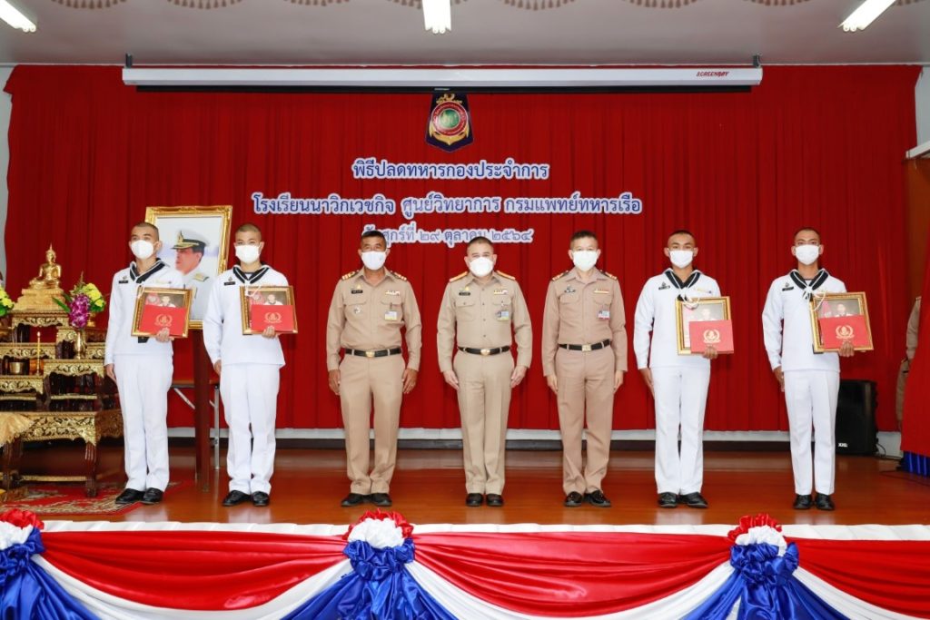 พลเรือโท ชลธร สุวรรณกิตติ เจ้ากรมแพทย์ทหารเรือ เป็นประธานในพิธีปลดทหารกองประจำการ ผลัดที่ ๓/๒๕๖๒ และ ผลัดที่ ๒/๒๕๖๓ จำนวน ๔ นาย ณ ห้องประชุมนาวิกเวชกิจ ๑ โรงเรียนนาวิกเวชกิจ ศูนย์วิทยาการ กรมแพทย์ทหารเรือ เมื่อวันที่ ๒๙ ตุลาคม พ.ศ.๒๕๖๔