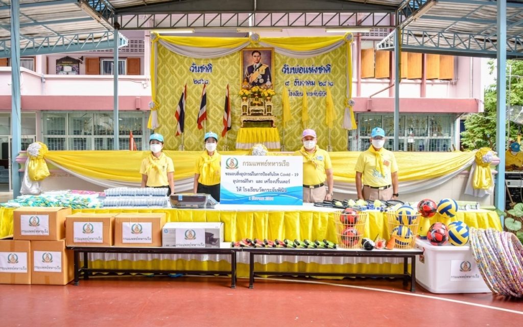 พลเรือโท ชลธร  สุวรรณกิตติ  เจ้ากรมแพทย์ทหารเรือ เป็นประธานในการจัดกิจกรรมบำเพ็ญสาธารณประโยชน์ เนื่องในวันคล้ายวันพระบรมราชสมภพ พระบาทสมเด็จพระบรมชนกาธิเบศร มหาภูมิพลอดุลยเดชมหาราช บรมนาถบพิตร วันชาติ  และวันพ่อแห่งชาติ ประจำปี ๒๕๖๔ โดยมีผู้บังคับบัญชา และกำลังพลจิตอาสาของกรมแพทย์ทหารเรือ เข้าร่วมกิจกรรมฯ ณ โรงเรียนวัดกระจับพินิจ เมื่อวันที่ ๑ ธันวาคม พ.ศ.๒๕๖๔