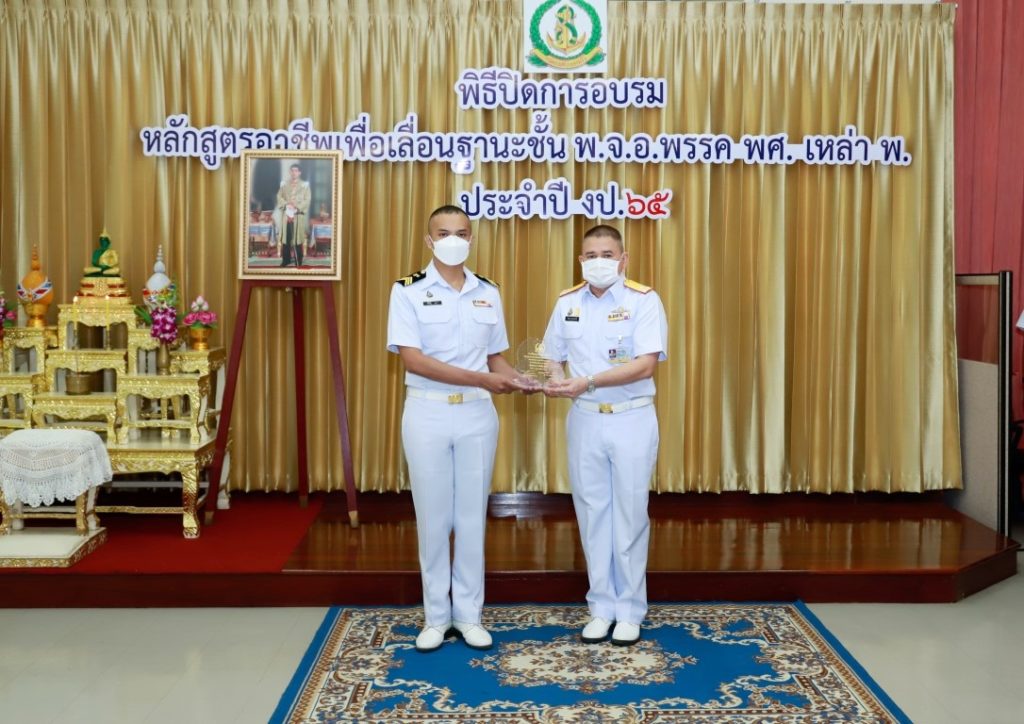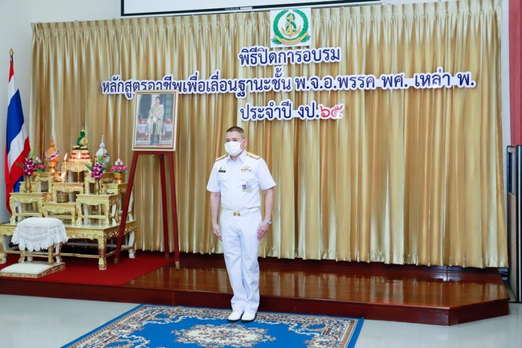 พลเรือโท ชลธร สุวรรณกิตติ เจ้ากรมแพทย์ทหารเรือ เป็นประธานในพิธีปิดการอบรมหลักสูตรอาชีพเพื่อเลื่อนฐานะชั้น พันจ่าเอก พรรค พิเศษ เหล่าแพทย์ ประจำปี งป.๖๕ (แบบออนไลน์) โดยมี ผู้บังคับบัญชาและข้าราชการของกรมแพทย์ทหารเรือ เข้าร่วมพิธีฯ ณ ห้องฝึกอบรม ๒ กองวิทยาการ ศูนย์วิทยาการ กรมแพทย์ทหารเรือ เมื่อวันที่ ๔ กุมภาพันธ์ พ.ศ.๒๕๖๕