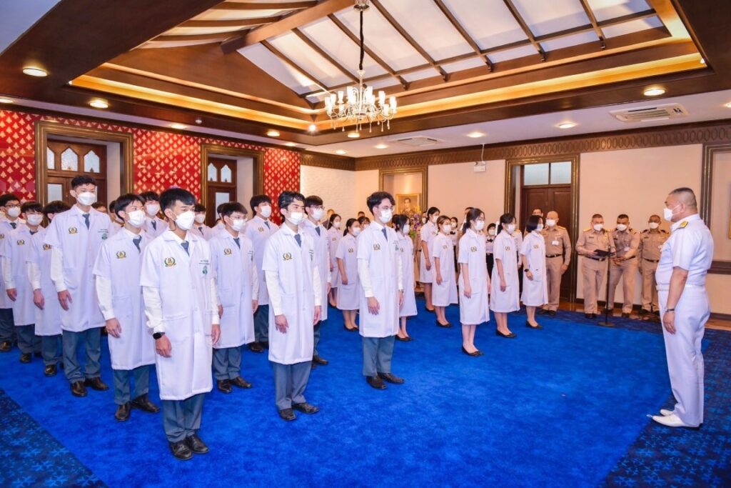 พลเรือเอก สมประสงค์ นิลสมัย ผู้บัญชาการทหารเรือ รับการเยี่ยมคารวะและให้โอวาทแก่คณะนิสิตแพทย์ มหาวิทยาลัยบูรพา ซึ่งได้มาศึกษาต่อในชั้นปีที่ ๔ ถึงชั้นปีที่ ๖ ที่โรงพยาบาลสมเด็จพระปิ่นเกล้า กรมแพทย์ทหารเรือ เป็นรุ่นที่ ๑ จำนวน ๓๔ นาย โดยมีพลเรือโท ชลธร สุวรรณกิตติ เจ้ากรมแพทย์ทหารเรือ และพลเรือตรี ณัฐ อิศรางกูร ณ อยุธยา ผู้อำนวยการโรงพยาบาลสมเด็จพระปิ่นเกล้า กรมแพทย์ทหารเรือ นำคณะนิสิตแพทย์เข้าเยี่ยมคารวะฯ ณ ห้องรับรอง กองบัญชาการกองทัพเรือ พระราชวังเดิม เขตบางกอกใหญ่ กรุงเทพมหานคร เมื่อวันที่ ๒๗ เมษายน ๒๕๖๕