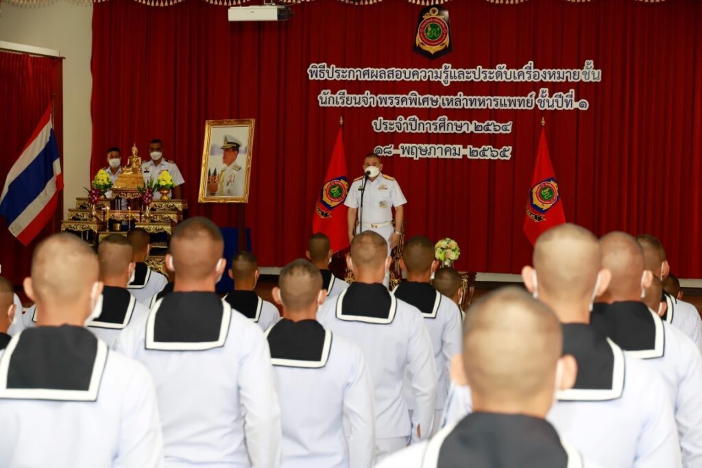 พลเรือโท ชลธร สุวรรณกิตติ เจ้ากรมแพทย์ทหารเรือ เป็นประธานในพิธีประกาศผลสอบความรู้และประดับเครื่องหมายชั้น นักเรียนจ่า พรรคพิเศษ เหล่าทหารแพทย์ ชั้นปีที่ ๑ ประจำปีการศึกษา ๒๕๖๔ ที่เลื่อนเป็น นักเรียนจ่าชั้นปีที่ ๒ ประจำปีการศึกษา ๒๕๖๕ พร้อมมอบโล่และรางวัล สำหรับผู้ที่มีผลการเรียนดี และกล่าวให้โอวาท โดยมีผู้บังคับบัญชาและข้าราชการของกรมแพทย์ทหารเรือ ร่วมพิธีฯ ณ ห้องประชุมนาวิกเวชกิจ ๑ โรงเรียนนาวิกเวชกิจ ศูนย์วิทยาการ กรมแพทย์ทหารเรือ เมื่อวันที่ ๑๘ พฤษภาคม พศ.๒๕๖๕