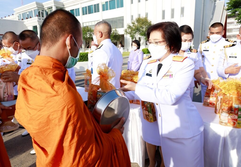 พลเรือโท ชลธร  สุวรรณกิตติ เจ้ากรมแพทย์ทหารเรือ ร่วมพิธีทำบุญตักบาตรพระภิกษุสามเณร เนื่องในโอกาสวันเฉลิมพระชนมพรรษา สมเด็จพระนางเจ้าฯ พระบรมราชินี เมื่อวันที่ ๒ มิ.ย.๖๕