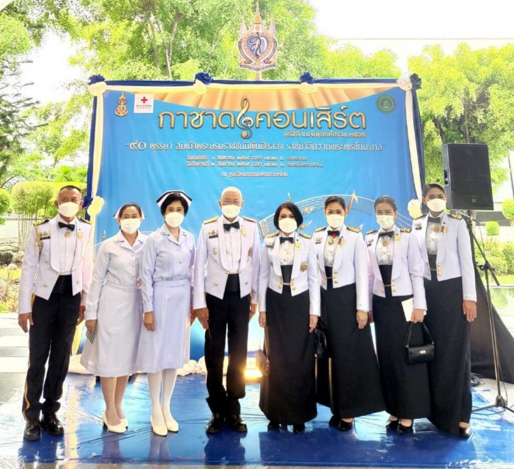 พลเรือโท ชลธร สุวรรณกิตติ เจ้ากรมแพทย์ทหารเรือ เข้ารับของที่ระลึกจาก พลเรือเอก พงษ์เทพ หนูเทพ องคมนตรี ผู้แทนพระองค์ ฯ และร่วมชมการแสดงกาชาดคอนเสิร์ต ครั้งที่ ๔๘ “๙๐ พรรษา สมเด็จพระบรมราชชนนีพันปีหลวง ราชนาวีถวายพระพรชัยมงคล” ณ หอประชุมใหญ่ศูนย์วัฒนธรรมแห่งประเทศไทย โดยมีทีมแพทย์ พยาบาล จากโรงพยาบาลสมเด็จพระปิ่นเกล้า กรมแพทย์ทหารเรือปฏิบัติการด้านการแพทย์และพยาบาล และ นักเรียนพยาบาลของวิทยาลัยพยาบาลกองทัพเรือ ปฏิบัติหน้าที่ในฝ่ายต้อนรับ เมื่อวันที่ ๒ สิงหาคม พ.ศ.๒๕๖๕
