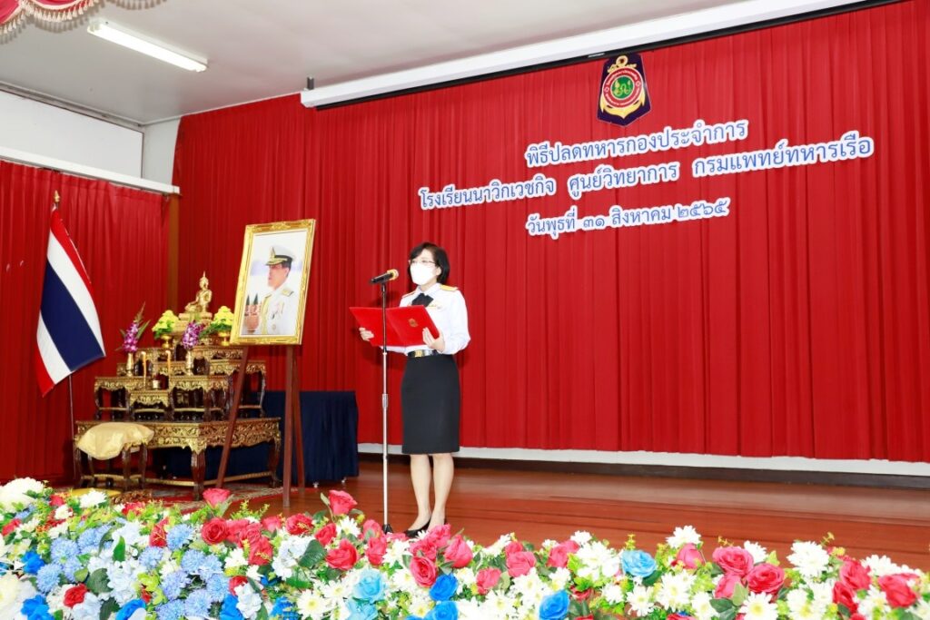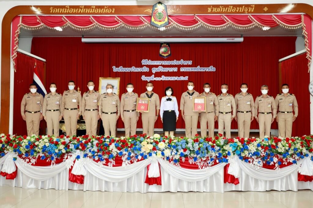 พลเรือตรีหญิง วรารัตน์ สิงห์ขวา รองเจ้ากรมแพทย์ทหารเรือ เป็นประธานในพิธีปลดทหารกองประจำการ โดยมีผู้บังคับบัญชาและข้าราชการของกรมแพทย์ทหารเรือ เข้าร่วมพิธีฯ ณ ห้องประชุมนาวิกเวชกิจ ๑ โรงเรียนนาวิกเวชกิจ ศูนย์วิทยาการ กรมแพทย์ทหารเรือ เมื่อวันที่ ๓๑ สิงหาคม พ.ศ.๒๕๖๕